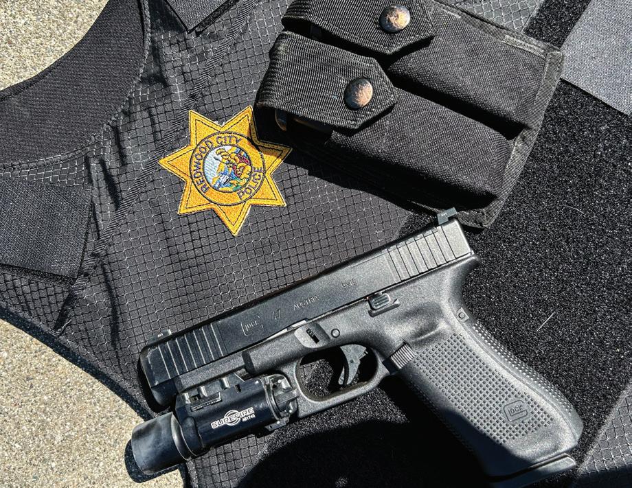 rack. It is also easier to pull it back to press check it. This may be attributed to the shorter dust cover on the Glock 47. Two, the trigger pull felt smoother than what I had come to expect from Glocks. The usual Glock trigger pull, to me, feels like a two-stage trigger with a long pull in between both stages. The Glock 47 trigger seemed to have eliminated some of the pull time and stiffness from the trigger pull. About half of the officers have opted to mount optics on their guns. We haven’t had any issues with them and, for those who prefer optics, it just makes a good gun better. Our department also issues SureFire X300 lights. The bean counters in the department counted it as a big win that