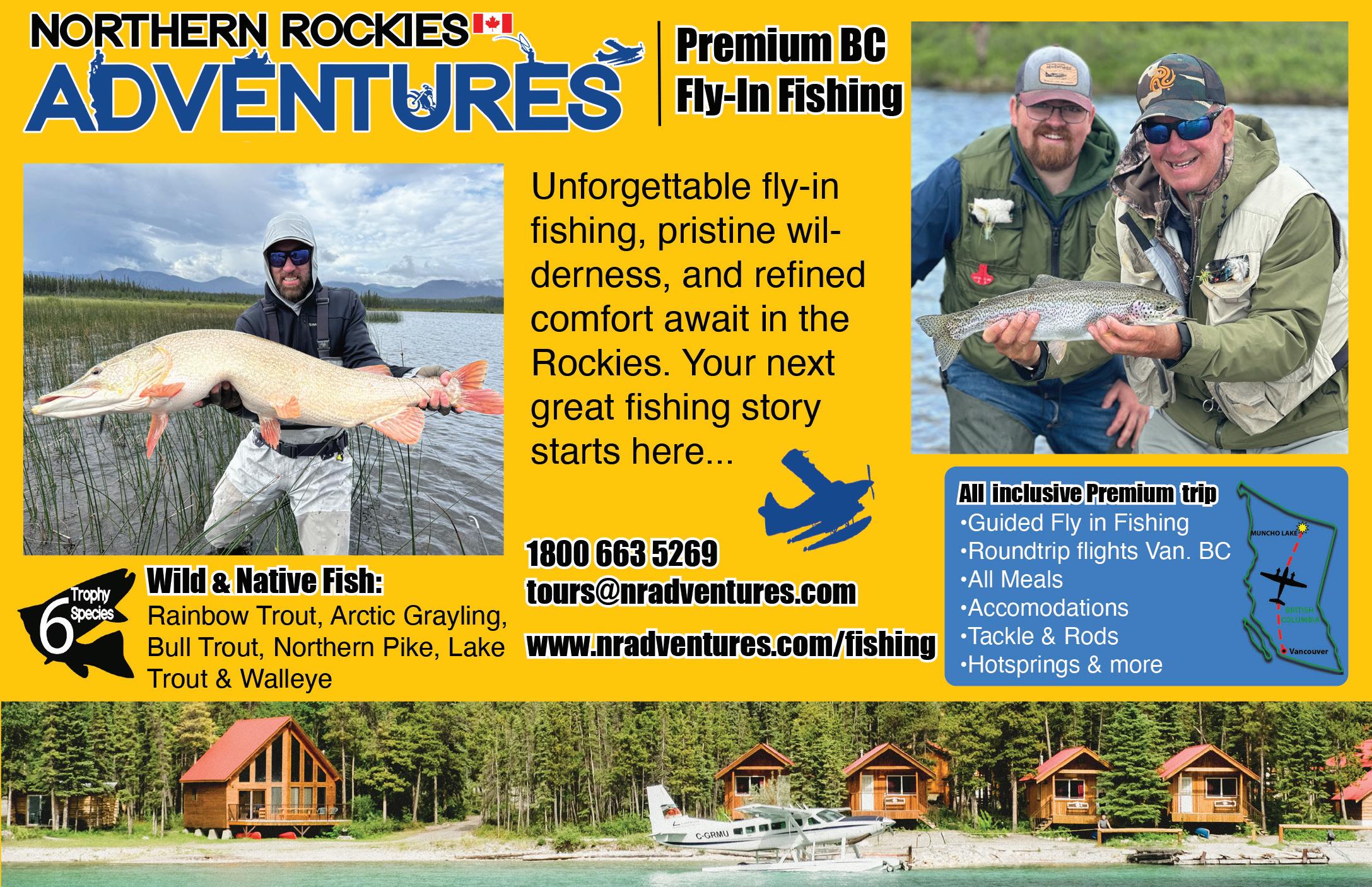 Northern Rockies Adventures nradventures.com/fishing Givetheultimatefishinggift:anall-inclusivefly-in fishingadventurewithNorthernRockiesAdventures! FlybyfloatplaneintotheheartofBritishColumbia’s pristineMuskwa-KechikaWilderness,castingforwild trout,pike,graylingandmoreacrossremoterivers, streams and lakes. Guidedbyover40yearsofexpertise,eachtrip includespremiumlodgeaccommodations,gourmet dininganddailyfloatplanefly-outstounforgettable fishingdestinations.Agiftofadventureandrefined comfort,createlastingmemoriesinoneofCanada’s mostspectacularwildernessregions.