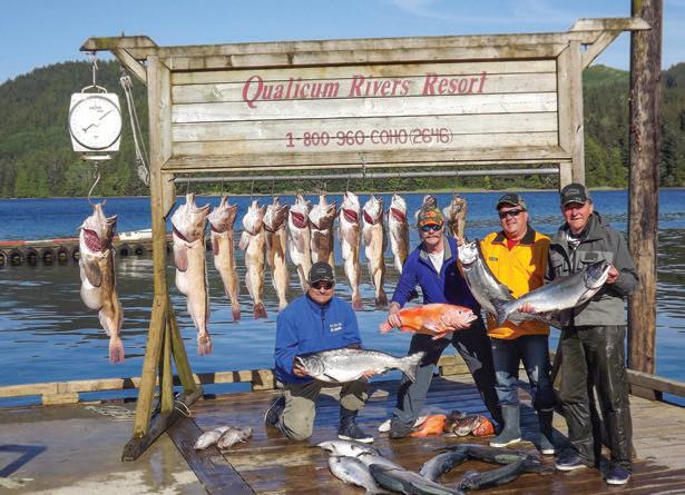 Many Vancouver Island trips result in bigger trophies and bigger bags of ocean fish for the freezer than more expensive trips to the north. That isn’t to say there aren’t unmatched opportunities further north in Canada and in parts of Alaska, but for convenience, cost and extremely high quality combined, nothing beats the west coast of this 300-mile-long island. For those like me who like to drive and stay somewhat in control of their own travel, all of the island can be reached in a long day’s travel from just about anywhere in the Northwest. From north to south, remote to popular, Vancouver Island’s protected sounds are as follows: Quatsino, Kyuquot, Nootka (Esperanza Inlet), Clayoquot and Barkley. I’ve fished them all, and each offers amazing fishing and wildlife viewing, but the further north you go, the higher the cost and quality of experience. That said, the best day of salmon fishing I’ve ever enjoyed occurred in the furthest south port, Ucluelet, with Kerry Reed of Reel Adventures Sportfishing (reeladventuresfishing .com). We released 50 salmon for two rods and kept limits of Chinook, coho and halibut. But literally the whole west coast is excellent. Here’s a brief overview of its five protected sounds and Port Hardy, the furthest north post on the island and another good option.