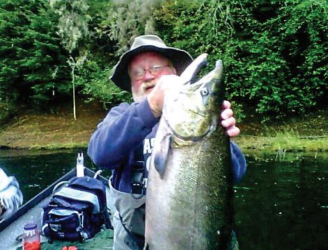 Sekiu and Washington’s Marine Area 5 are known for putting out a bigger grade of saltwater Chinook during the late winter/early spring fishery, with a few into the upper teens. Joey Pyburn shows off one he caught with The Outdoor Line radio show cohost Tom Nelson last March. (TOM NELSON)
