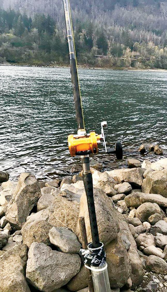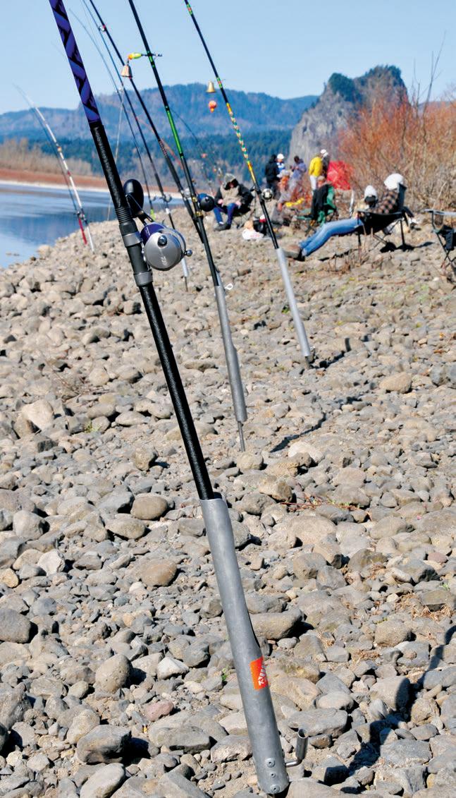 The long-handled rods used when plunking the Columbia are called bar rods and are of a stout action. Every rod I saw was in the 11- to 12-foot range. All but one of the over 70 rods I viewed during my scouting trip were equipped with baitcasting reels filled with monofilament (no one was using super braid). Of the anglers I visited with, all were using 25-poundtest mainline in combination with a 40-pound-test monofilament leader.