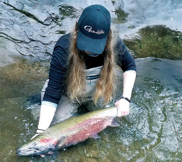 Bob Rees shows off a winter steelhead taken from Oregon’s Wilson River that fell for a