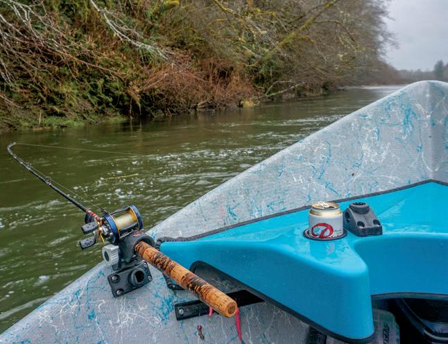 Many back-trollers use rodholders, but you won’t find them on the front of Ramsey’s drift boat for winter steelhead. He has anglers he’s fishing with hold their rod while “bracing the midsection against the drift boat gunnel,” which he says “goes a long way in ensuring the hook points get initially started … This forces my friends to catch more fish.” (CHASE GUNNELL)