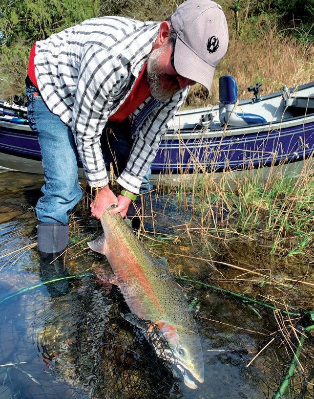 What I do is have my passenger friends hold their rods with the reels positioned in their lap with their thumb on the reel spool. Holding the rods steady and braced against the gunnel makes it a lot easier for the person rowing to see the rod tip and know the plugs are working properly. Sure, I sometimes pull hard on the oars to help set the hook and you should too. Doing these things can make a big difference in improving your hookto-land ratio and might help you catch that big-boy steelhead. NS