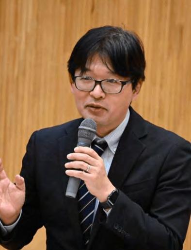 Attending the Japan Pavilion’s sake ceremony were delegates Mitsuhide Motoyama (left), Chuo Nittochi Group; Kanji Matsushita, Takenaka Corporation; Yuichi Oka, Daiwa House Europe; Hideki Nose, Sumitomo Forestry; and seminar host Andrew Eborn