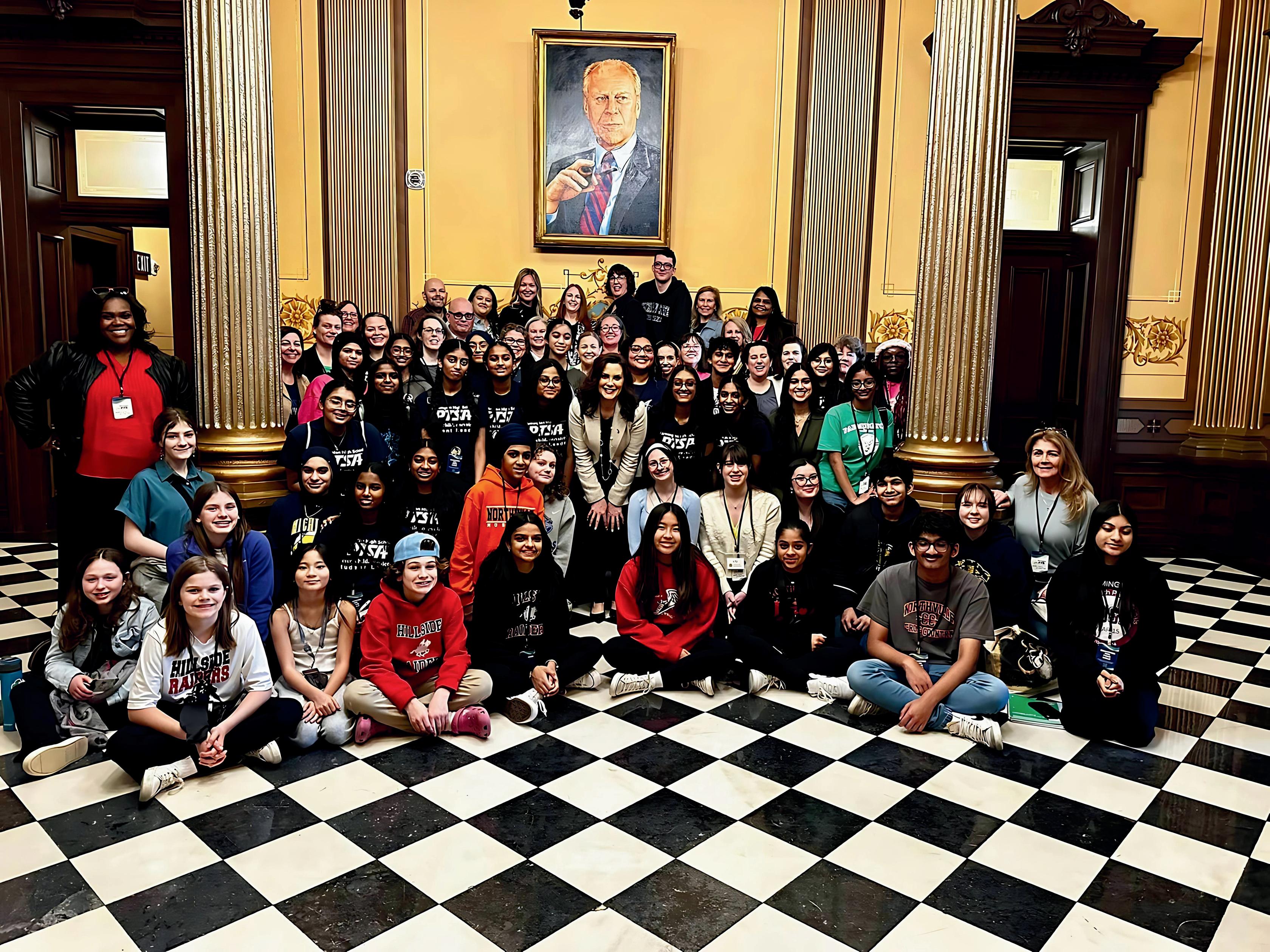 PTSA student members stand with Governor Gretchen Whitmer during Michigan PTA’s 2024 Advocacy Day at the Capitol, proudly representing the next generation of leaders.