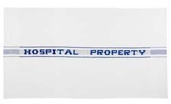 Highly absorbent towel Hospital Property Towel come in white with “Hospital Property” woven in blue lettering.