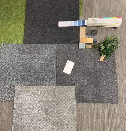 To make use of what we have available, it was crucial to calculate the m2 of the overall flooring plus the percentage of wastage, as well as nothing down the suppliers and product code. The design element to this was somehow corollate the mixture of carpet tiles with each other and the furniture that was available.