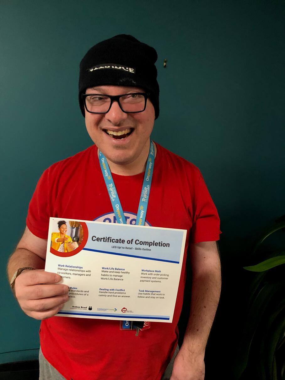 Bruno’s outstanding desire for learning brought him to Action Read many years ago. He is working in the one to one program as well as attending several groups like safe food handling, landscape maintenance and recently the janitorial program.