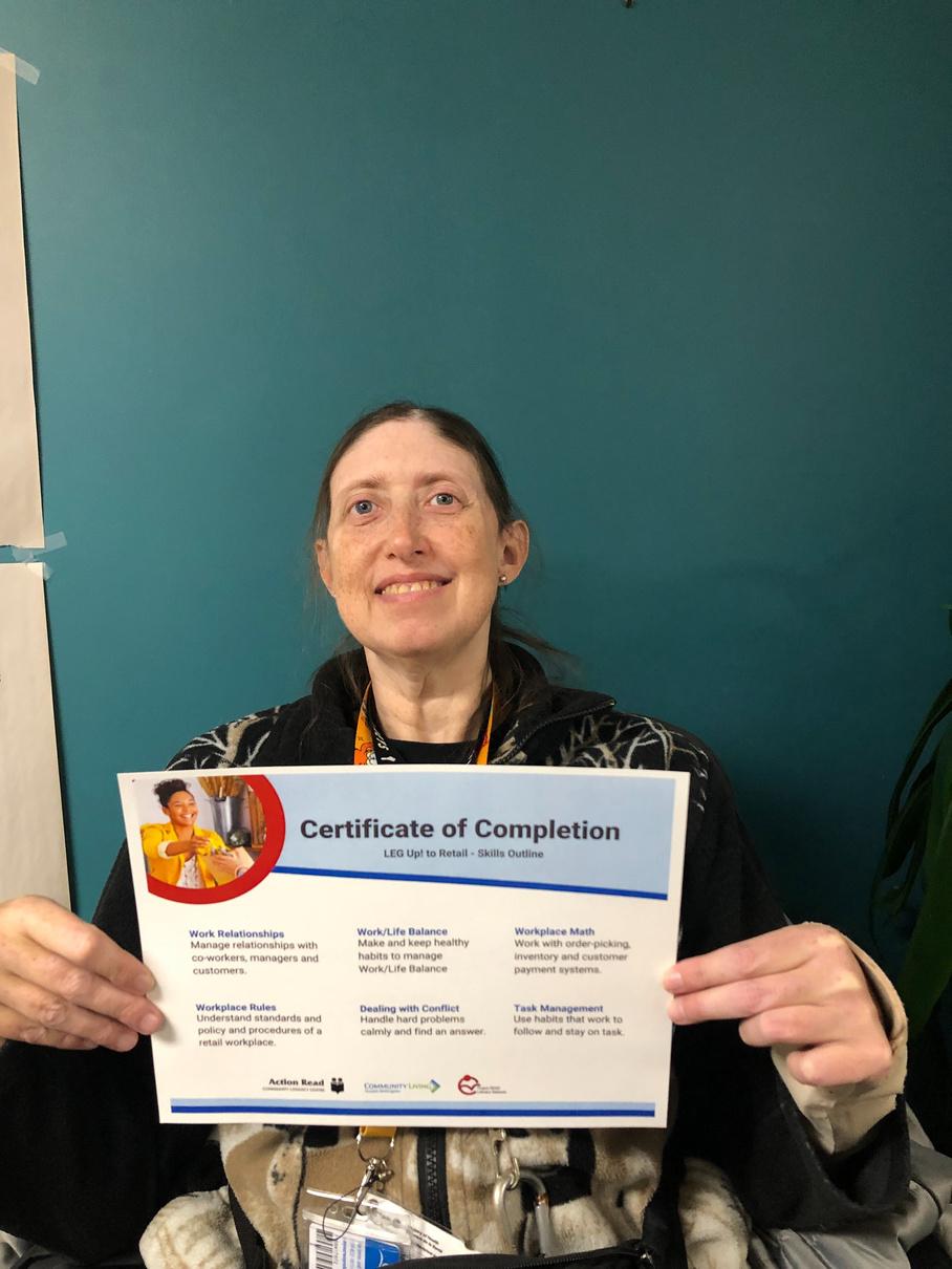 Shari joined our cashier training program in 2020. Since then she has taken many courses including computers, call centre training, Smart Serve, safe food handling, Rent Smart, receptionist training, creative writing group, book club, and participated in Project Read’s Skills for Success assessment project.