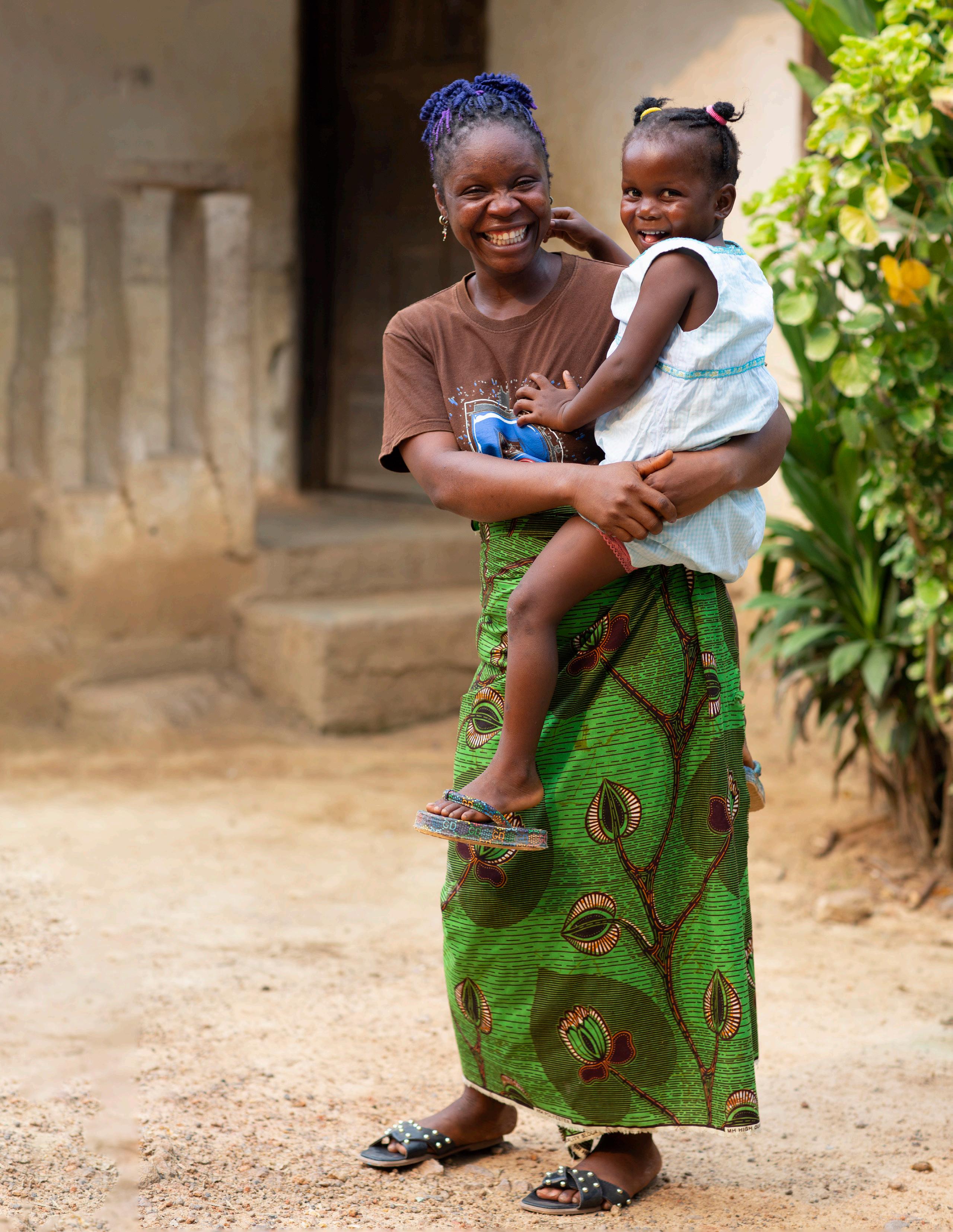 Back: Miracle, age 5, and her mother outside their home in Liberia, where she received clubfoot treatment at a nearby MiracleFeetsupported clinic.