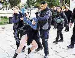 aged legs — to trickle out of detention. People leaving detention said police used batons, chairs, ri es and whatever else they could nd to strike Palestinians, including women and children, who responded by setting o recrackers and hurling stones.