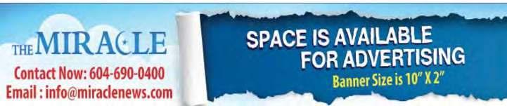 Its availability at Website. miraclenews.com, Facebook (the Miracle Newspaper), Twitter, (https://twitter.com/Miraclenews1), and at two other digital printing service providers, “Press Reader” at https:// www.pressreader.com/canada/the-miracle/latest and “Magzter “ at https:// www.magzter.com/CA/Miracle-Media-Group-Inc in all over the world.