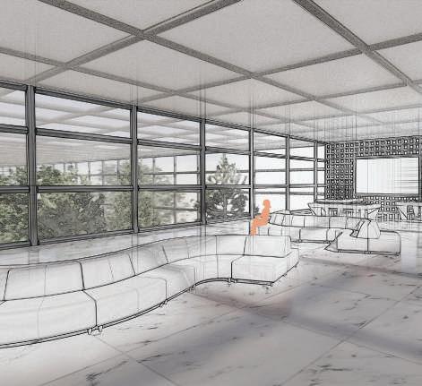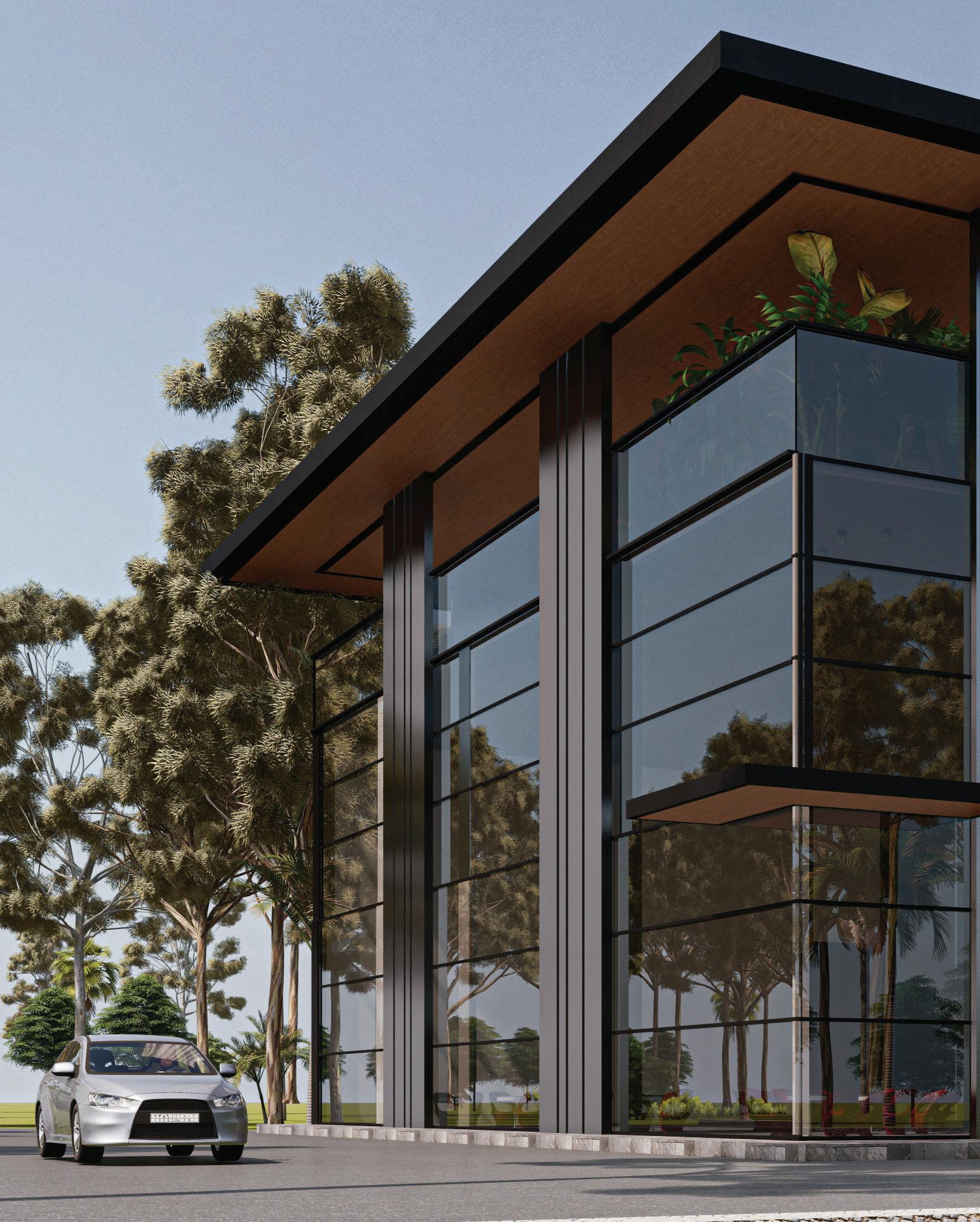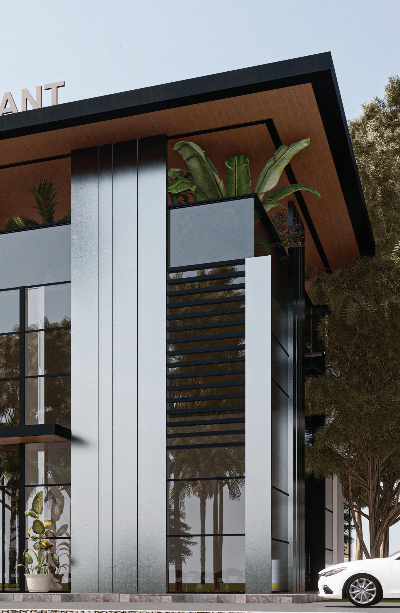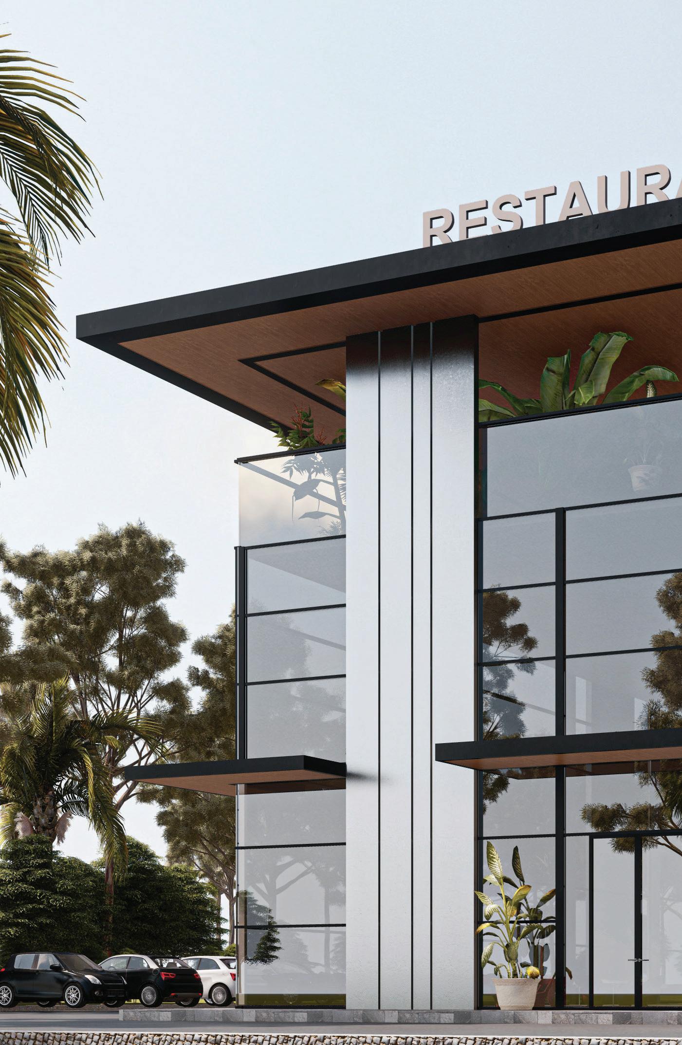 The renovation of this restaurant along the Corniche in Dammam completely transformed its exterior with an all-glass design, maximizing natural light and framing open views to the south and west. This approach creates a seamless indoor-outdoor connection while strategically minimizing exposure to the neighboring building. Complementing this open concept, a rooftop adds an elevated perspective of the city and sea. Clean