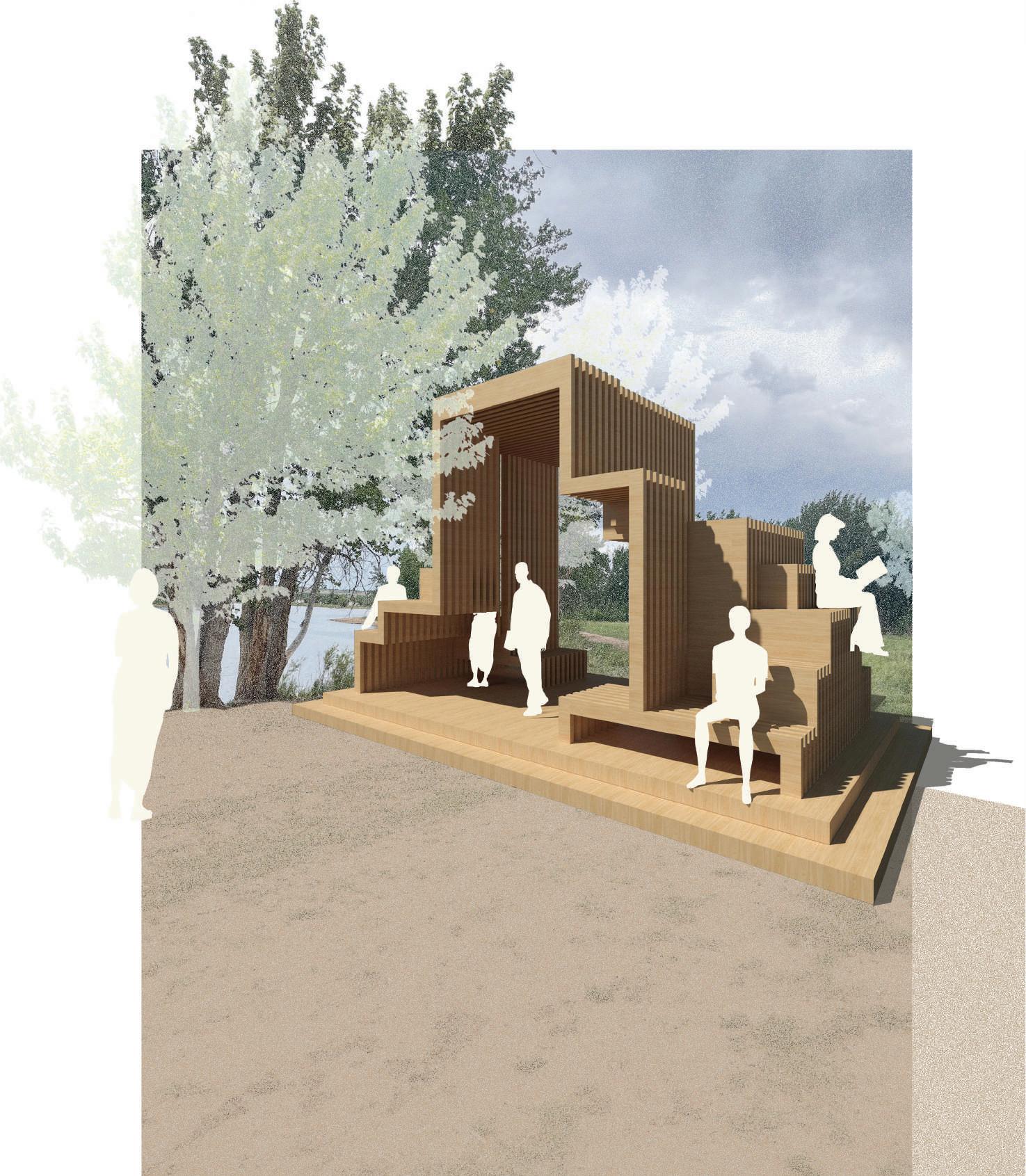 Trail. It offers views of the river on one side and the trees on the other. This pavilion allows park visitors to observe birds year-round, witnessing various species as they migrate. The structure faces the water, enabling observers to spot not only land birds but also waterfowl such as ducks, geese, and swans. Additionally, it provides visitors with the opportunity to enjoy the serene surroundings of the pond while observing a variety of bird species.