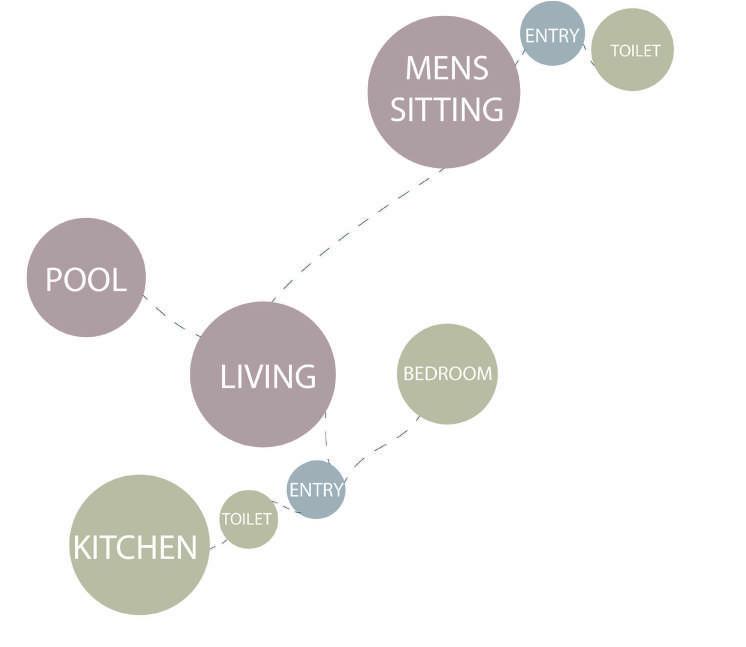 The villa’s design highlights classical principles with each room enclosed by its own walls and doors, creating a sense of privacy and order. The living room, centrally located, serves as the focal point, while other spaces, like the kitchen, are distinctly separated. The all-beige palette, subtle trim work, and emphasis on symmetry give the villa an elegant, timeless feel, blending modern simplicity with the essence of neoclassical style.