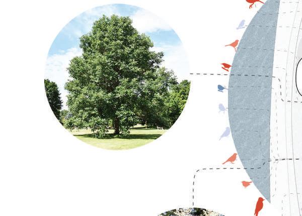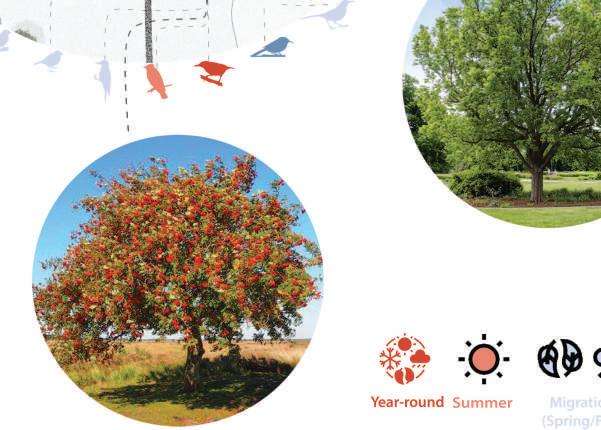 It also serves as an event venue for Denver Audubon and bird watchers. The building is designed to blend with the surrounding trees, creating tree gardens where multiple species are planted to attract a variety of birds throughout the year. One side of the building faces the lake and mountains, while the other overlooks the forest, allowing park visitors to enjoy views of both water and land-based bird species. The center’s garden features one of the largest and oldest trees on the site, which serves as a training area for tree planting.