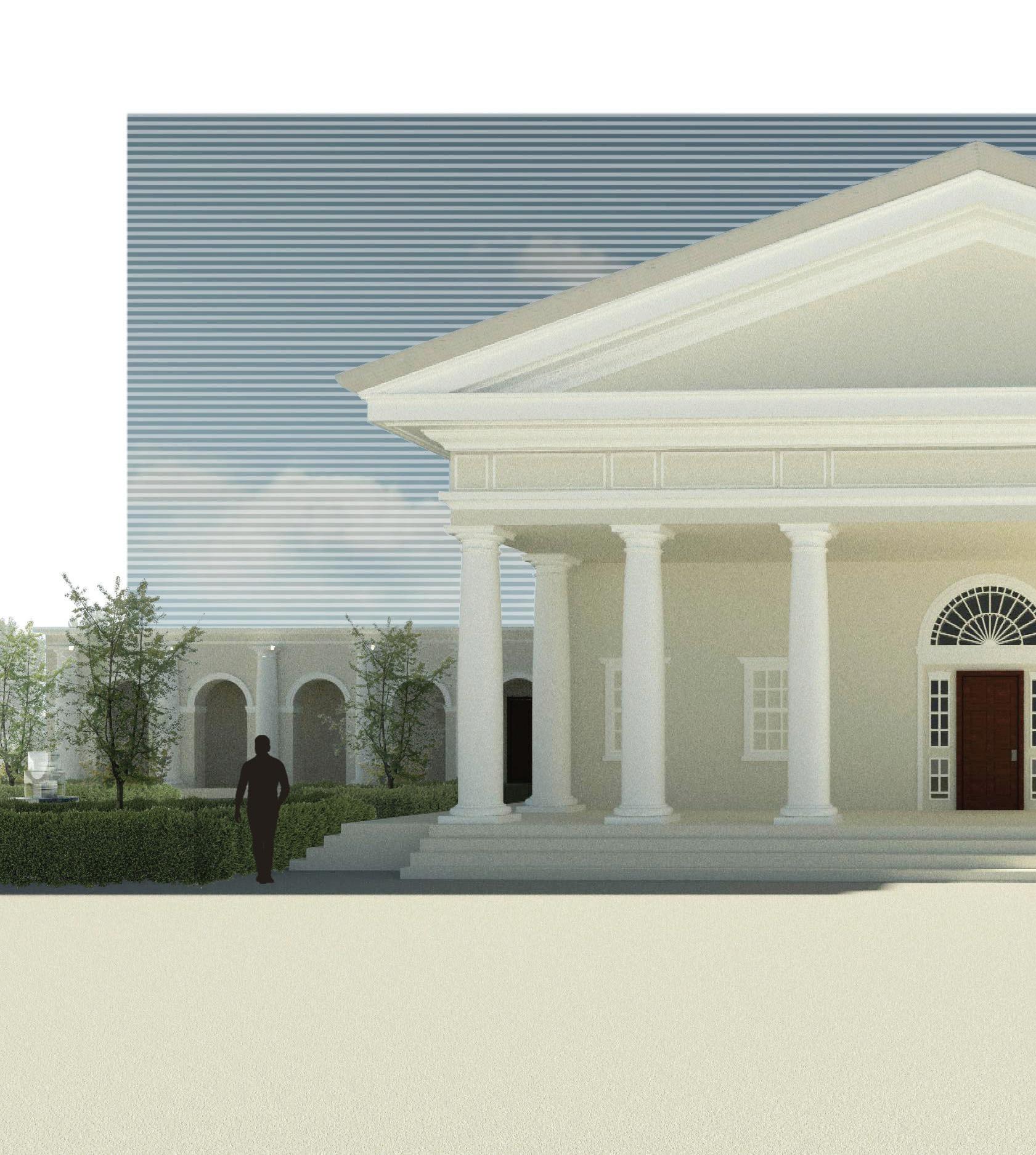 This project celebrates the timeless beauty of Williamsburg’s architecture, driven by a historic structures, including lanterns, gabled roofs, and arches. Strategically positioned on the site, the design aligns with two axes, extending by 25 feet to create symmetry on both sides of the garden. The project’s core focus is on the symmetry of columns, windows, and overall shape. I developed a systematic approach to maintain this symmetry,