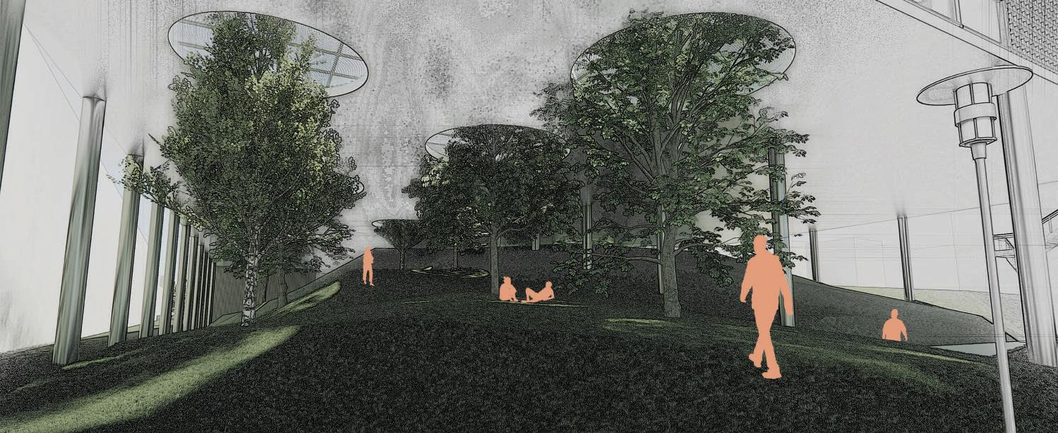 In honor of the many generations who migrated to St. Louis during the early settlement of the city, this Steel Fabrication and Community Center is named STAHL, the German word for steel. In light of the project›s context, we have worked to connect the surrounding community with nature by incorporating biophilic design strategies. This approach allows trees to thrive inside the structure, where we’ve routed the carbon emissions from the steel fabrication process into the atrium spaces, nourishing the trees with carbon dioxide.