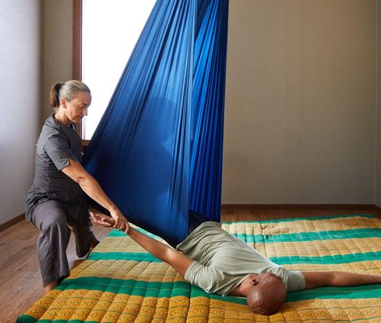 Thai-inspired Aerial Bodywork Sanskrit for bliss, Sukha uses gentle Thai techniques that let you trust your practitioner to wrap—and cocoon you—in strong silks that ease your limbs into weightlessness. Guided movement helps you stretch more deeply and leaves you feeling refreshed and limber. Wear loose, comfortable clothing. $