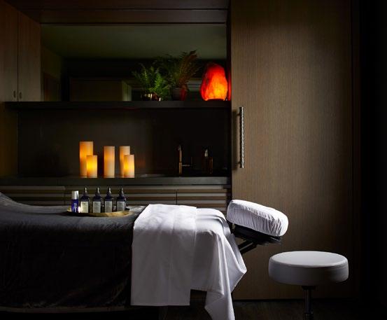 SWEET SLUMBER MASSAGE Aromatherapy, acupressure and tapping set the stage for a peaceful night’s sleep, enhanced with a neck and shoulder massage, rhythmic rocking, and relaxing lavender oil. Tension dissolves under the compression of warm magnesiumsteeped towels. $