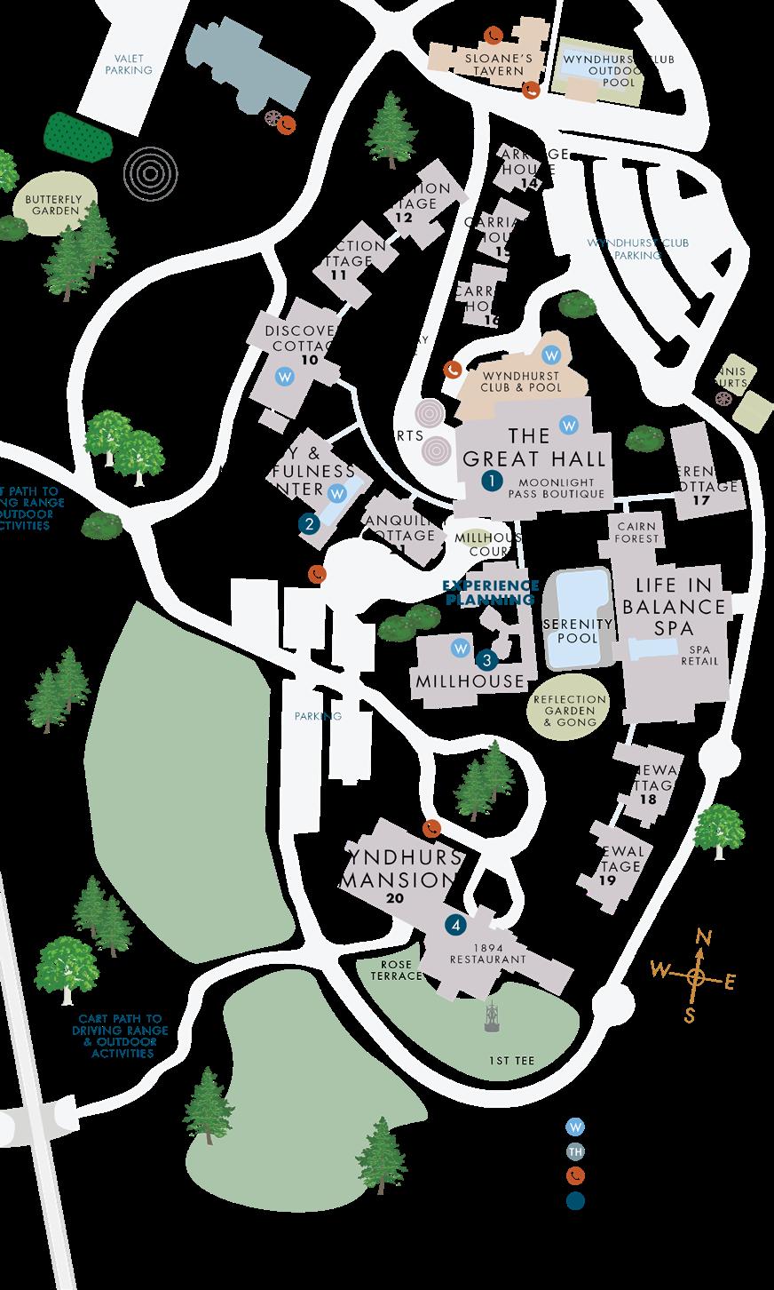 • Our reminders and property map (back cover) will help orient and guide you on your Miraval Berkshires journey.