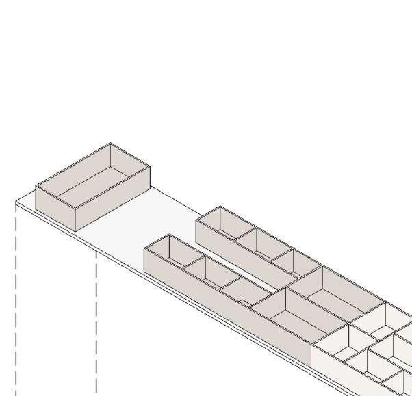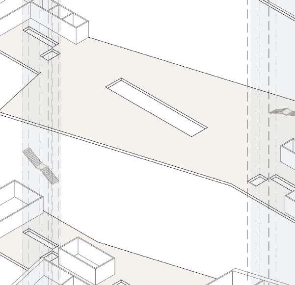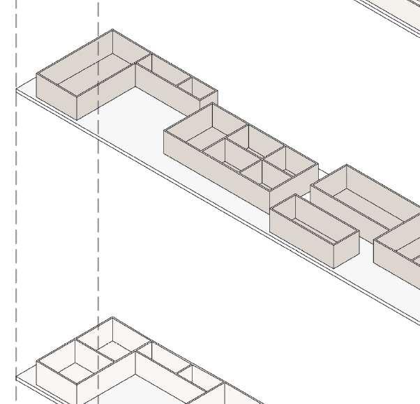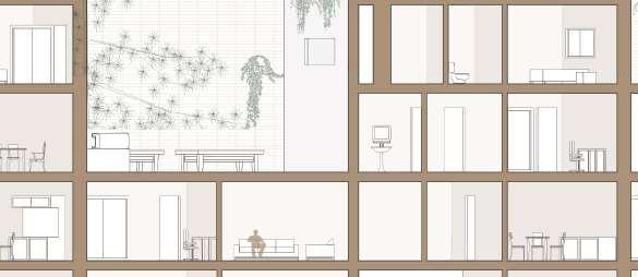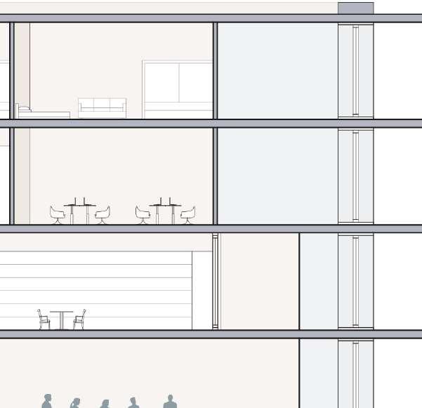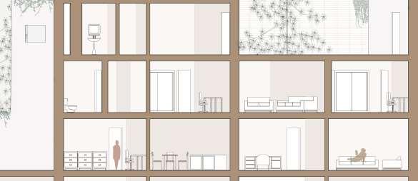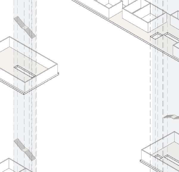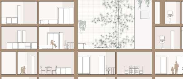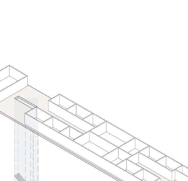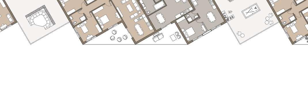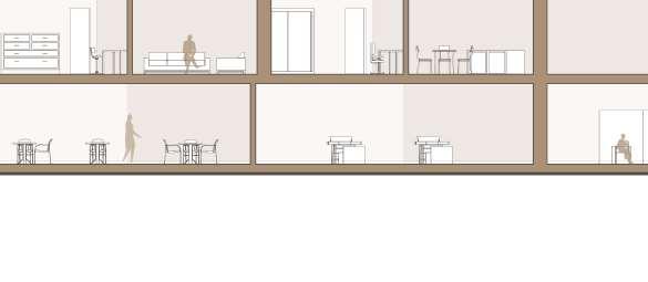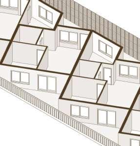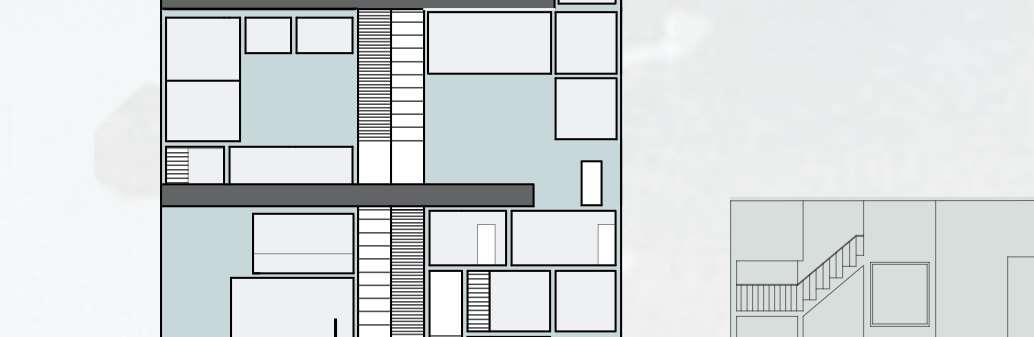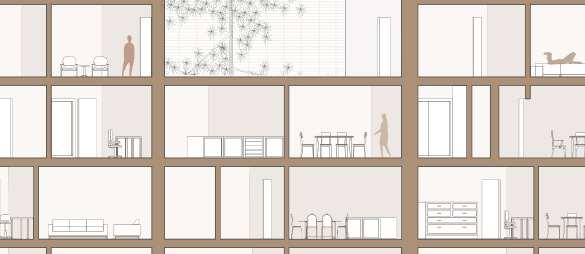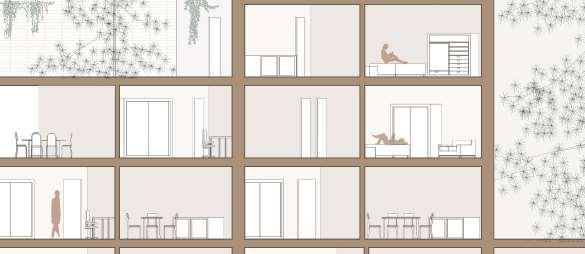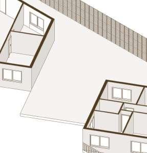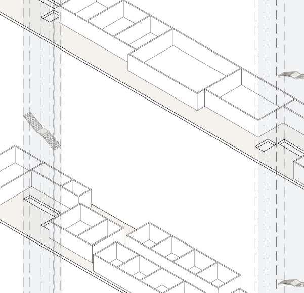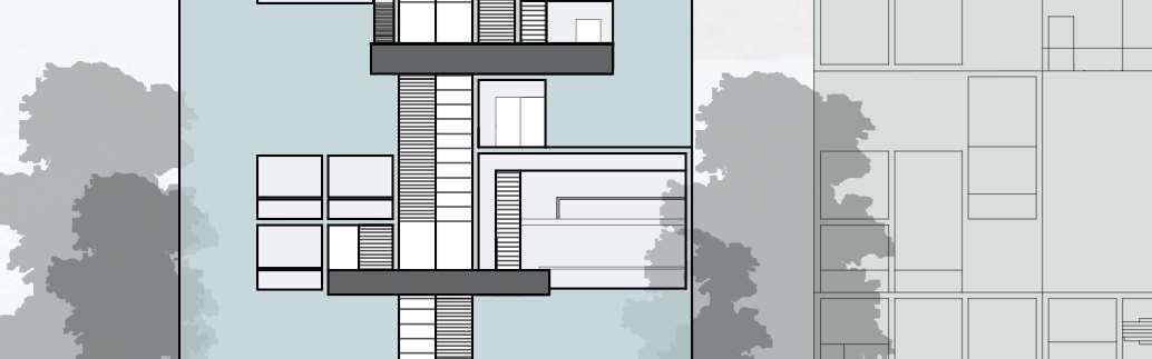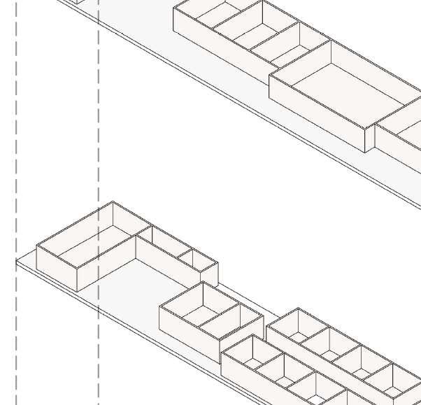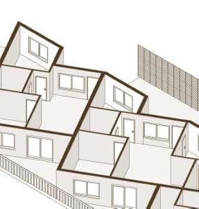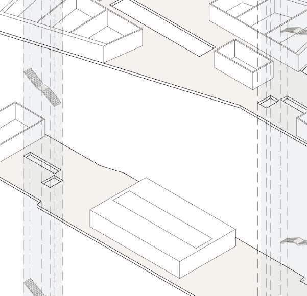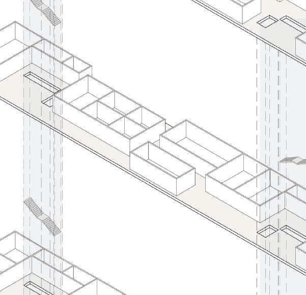 floor contain 2 villas and between each floor there is a shared public platform. The villa is constructed according to a grid as the cube is 9mx9m.The villa will fit a family of 4 members.
