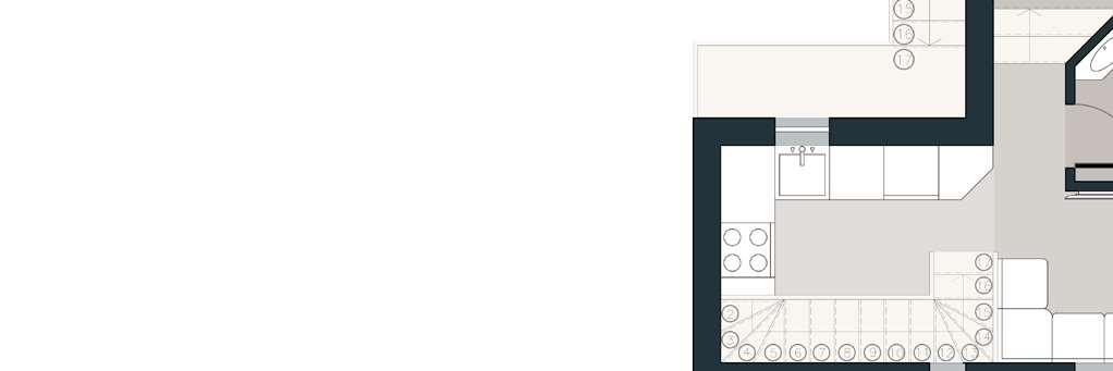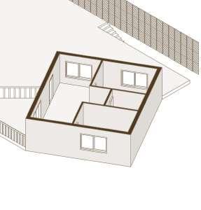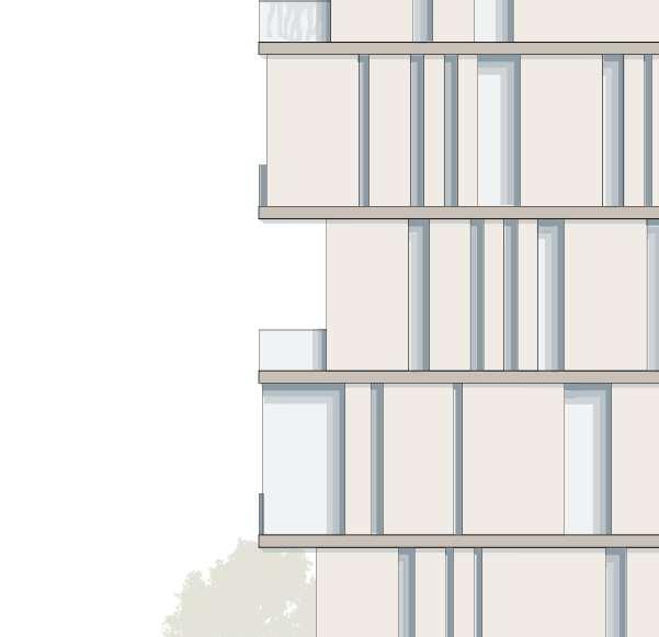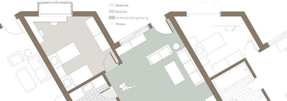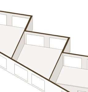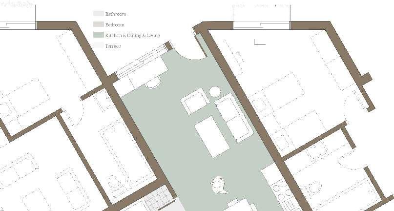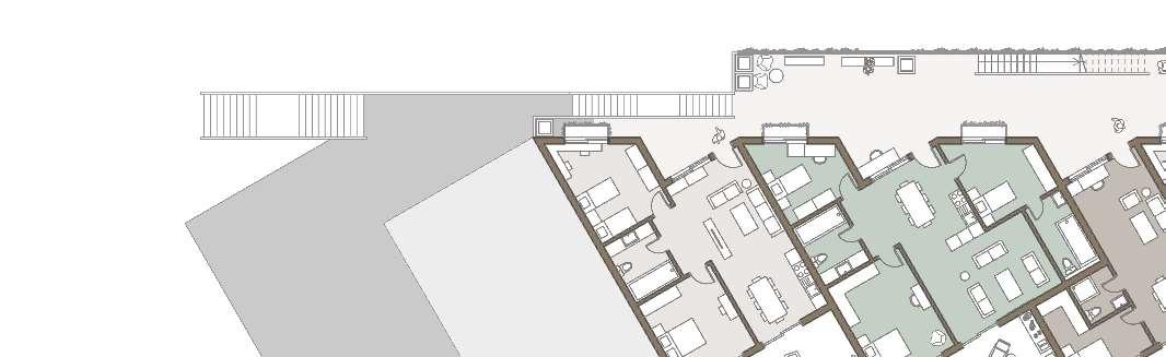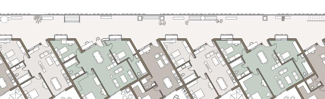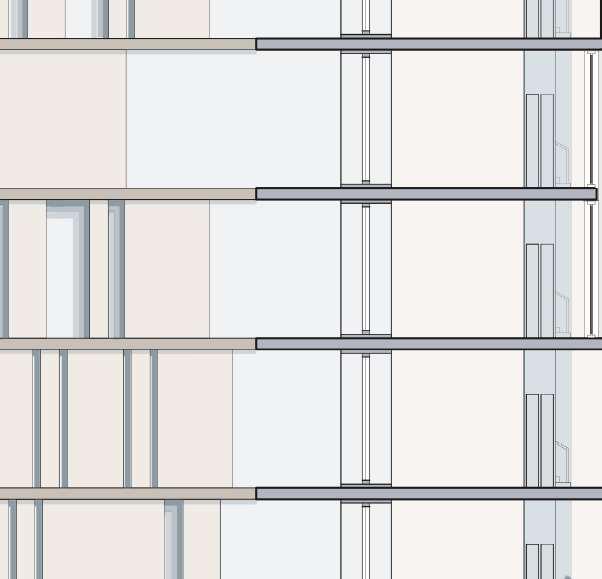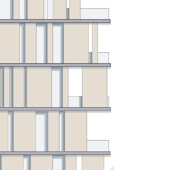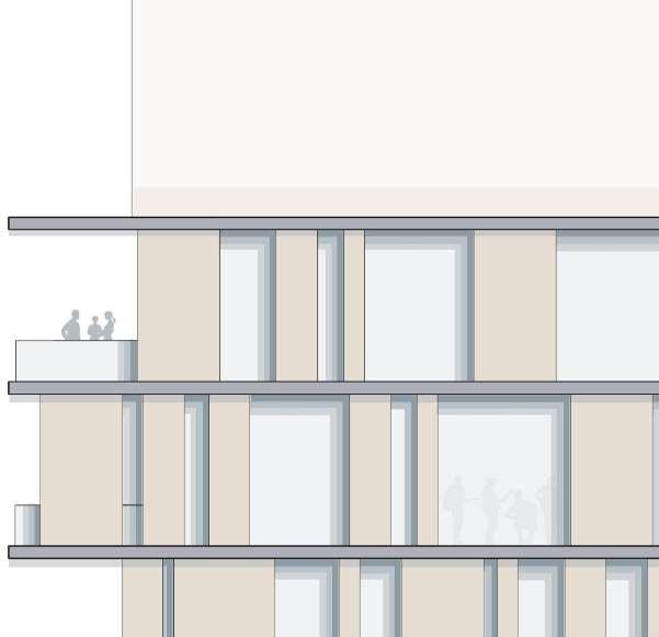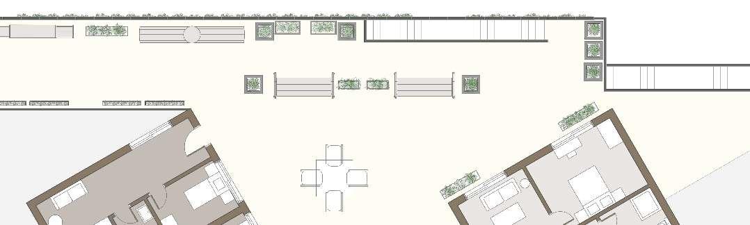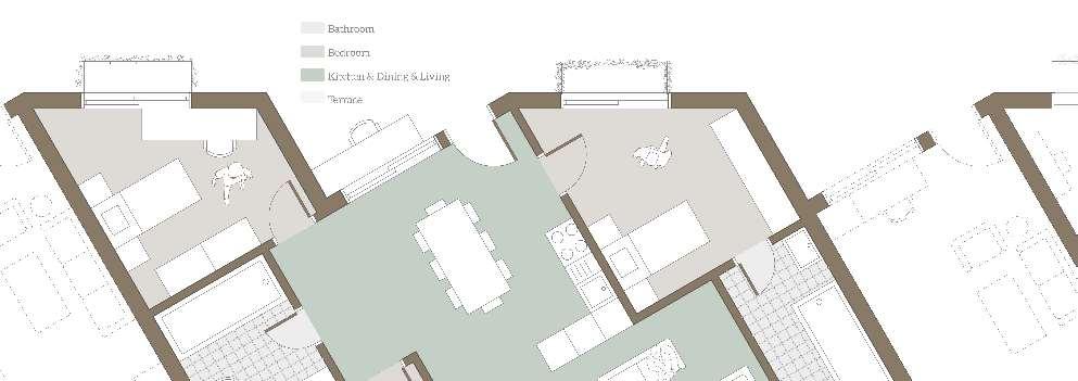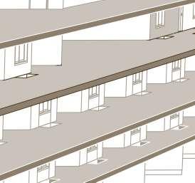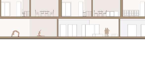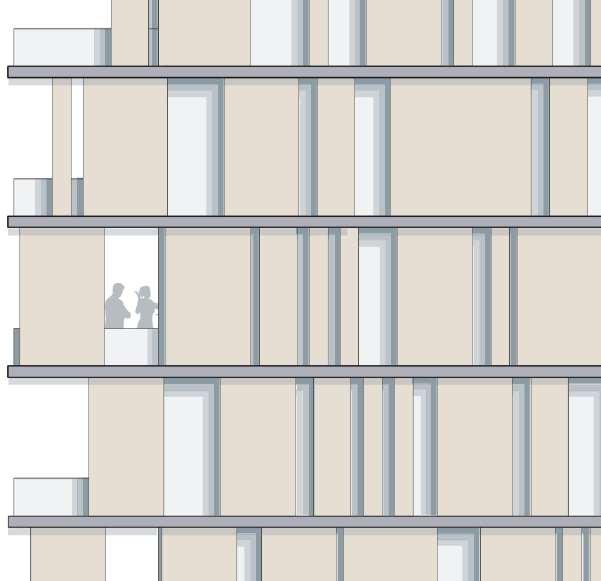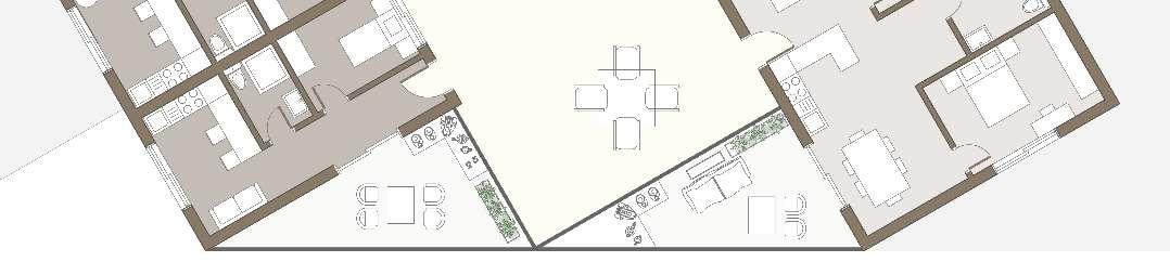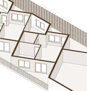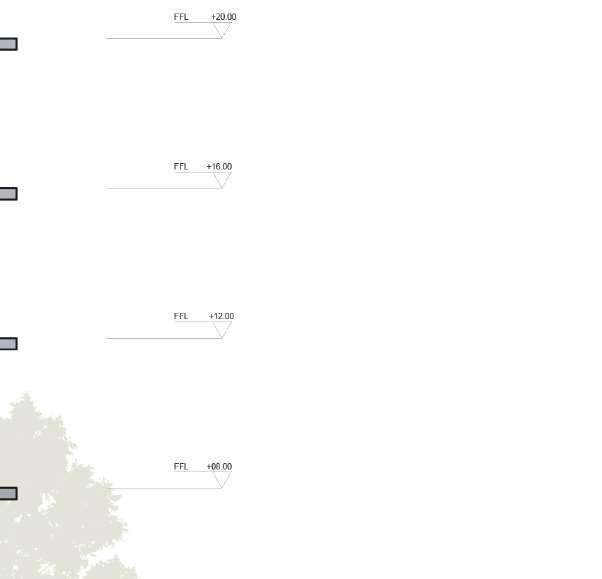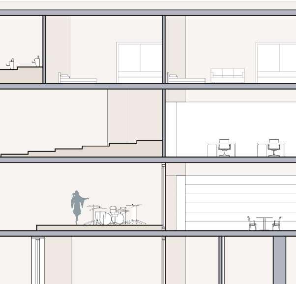 floor contain 2 villas and between each floor there is a shared public platform. The villa is constructed according to a grid as the cube is 9mx9m.The villa will fit a family of 4 members.