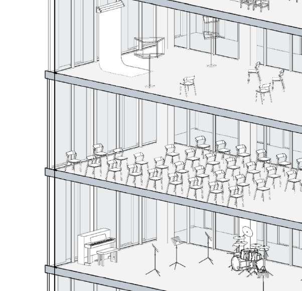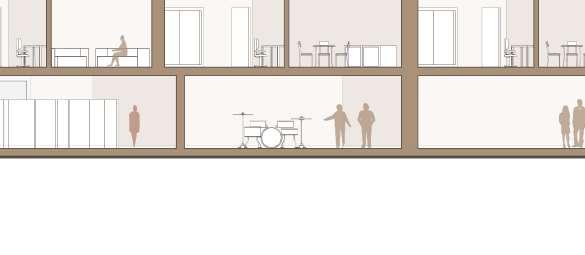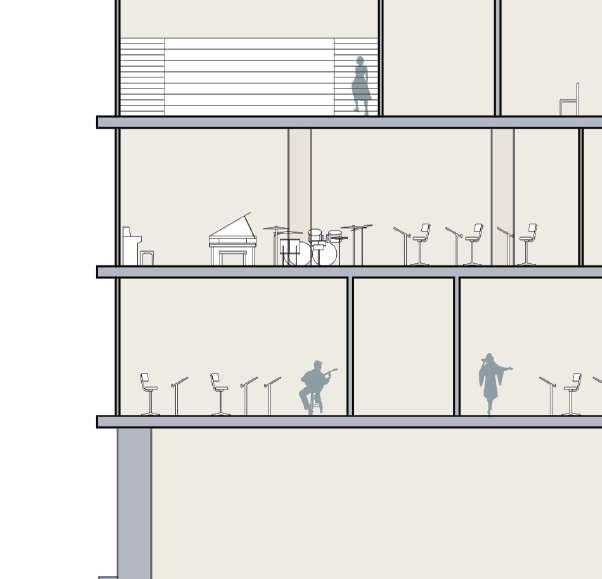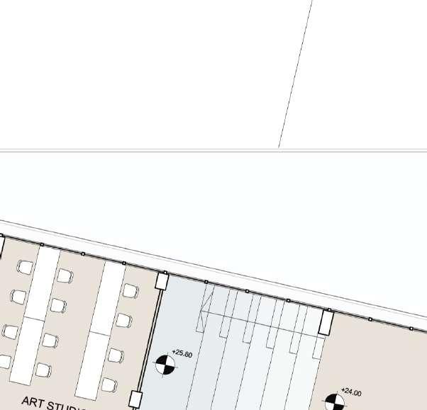 The academy revolves around the concept of TRIADE where Film , Music and Liteture meet in one place . The first three floors are for the triade . The buiding is complimented with a big terrace (outdoor area) for interacting . To show the diffrence between the fuctions of each of the interlocking buildings , two diffrent material were used. Compacted earth wall for the form that have triade functions and the other form light conncrete walls was used.