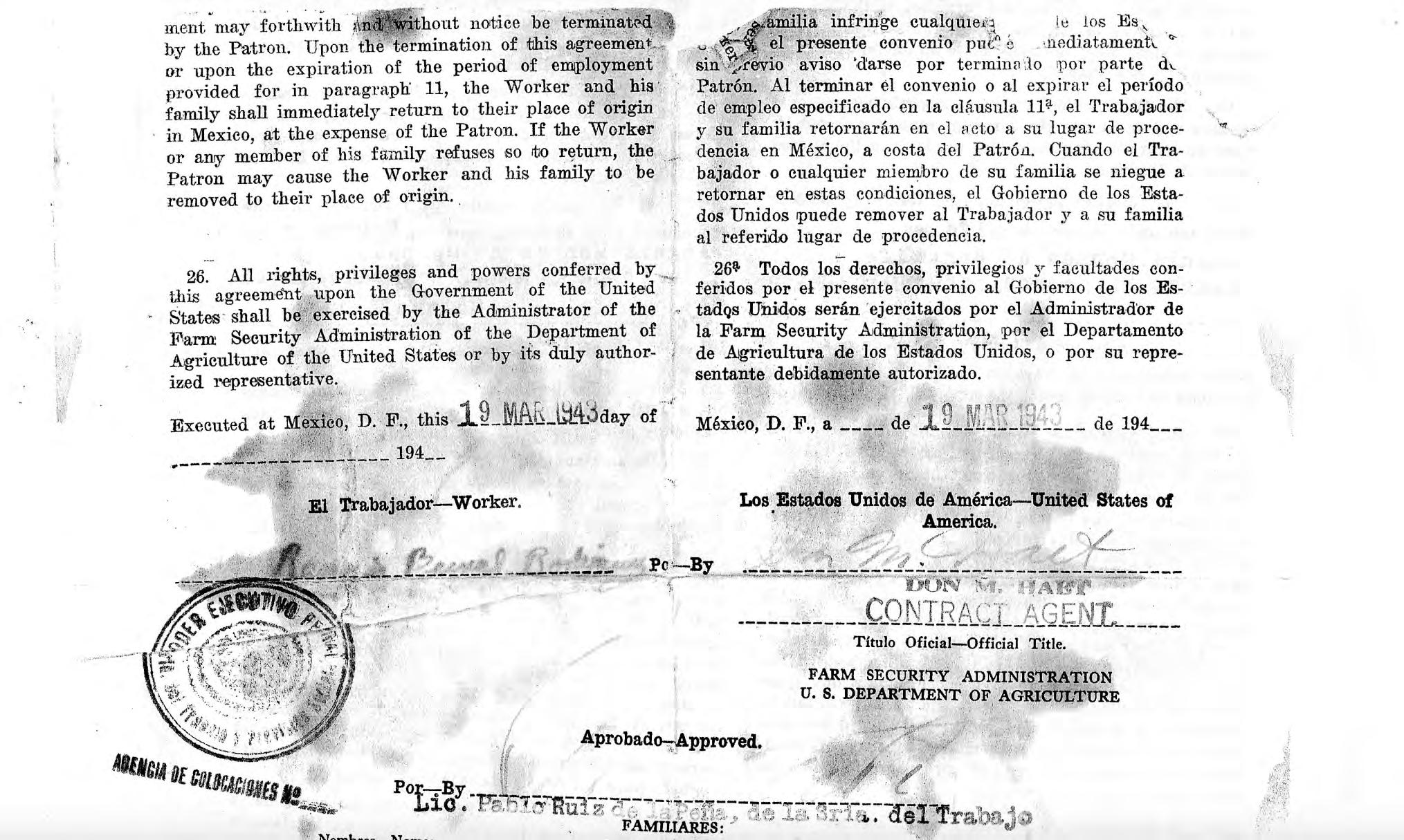 An executive order called the Mexican Farm Labor Program established the Bracero Program in 1942. This series of diplomatic accords between Mexico and the United States permitted millions of Mexican men to work legally in the United States on short-term labor contracts.