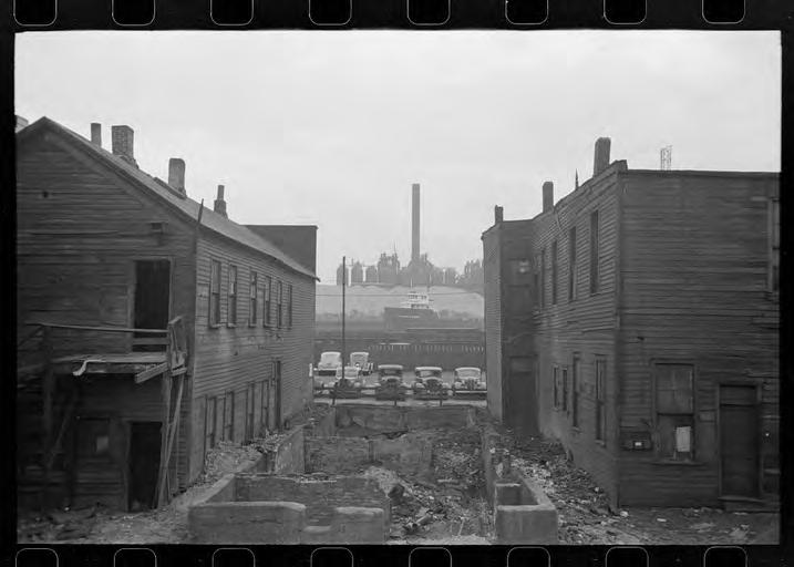 Lee, Russell, photographer. Condemned houses in Negro section of Chicago, Illinois, with steel mills in background. United States Illinois Chicago, 1941. Apr. Photograph. https://www.loc.gov/item/2017743698/.