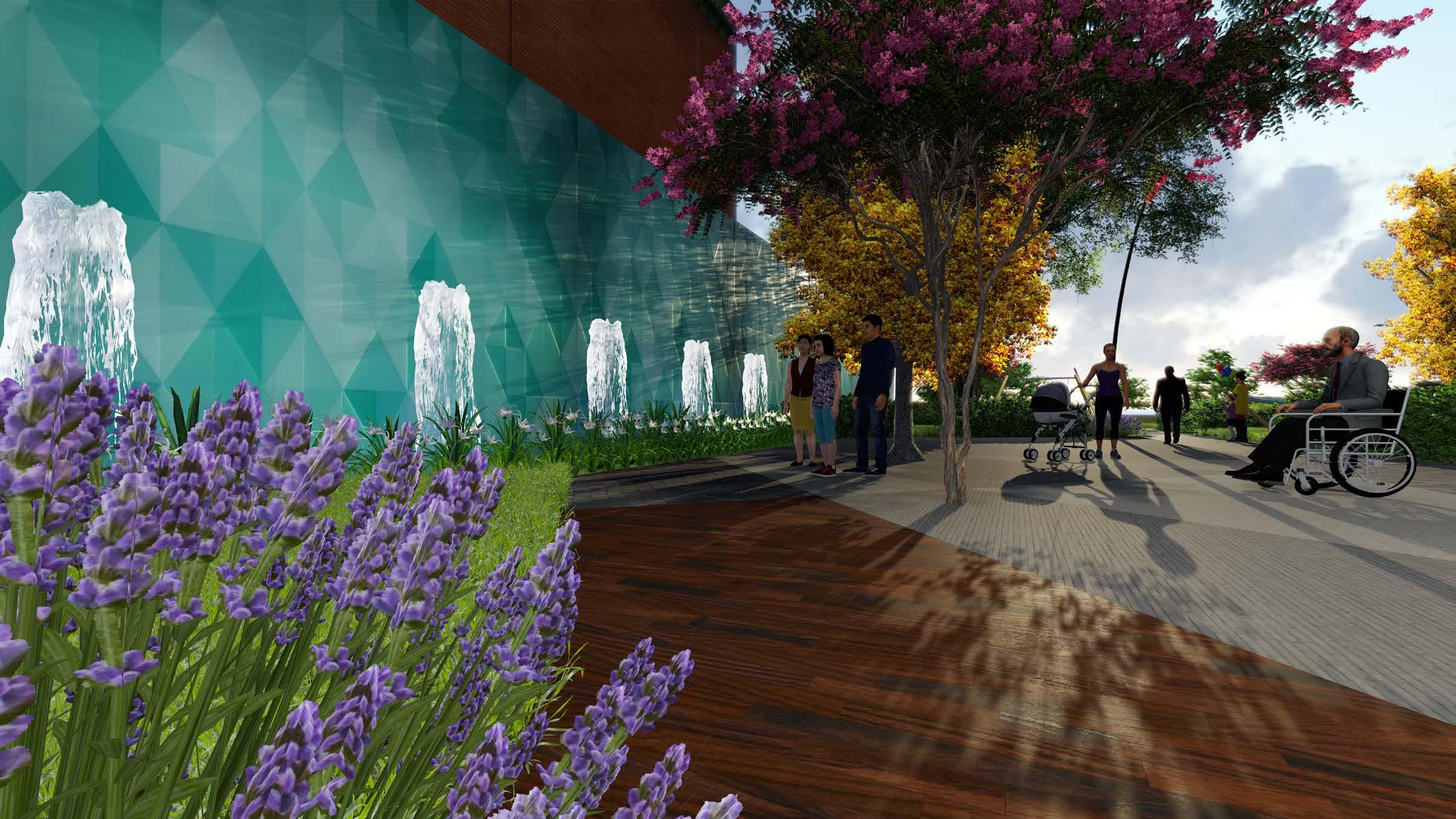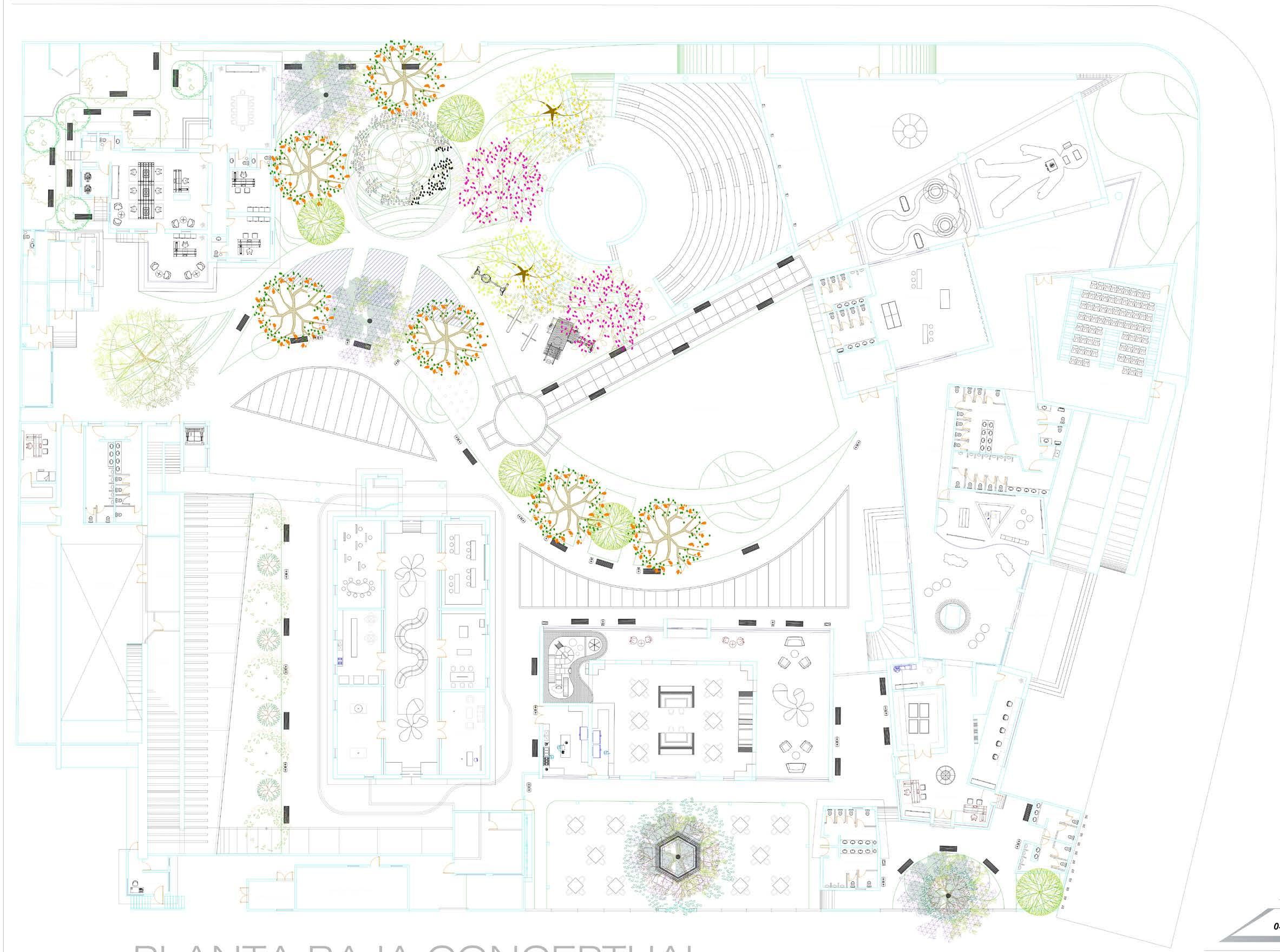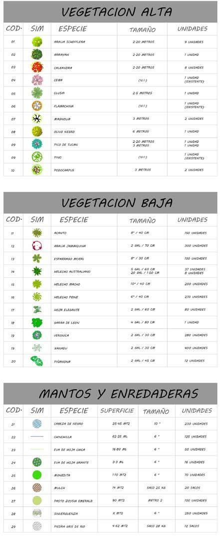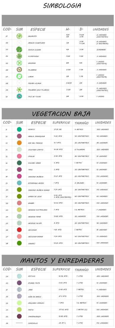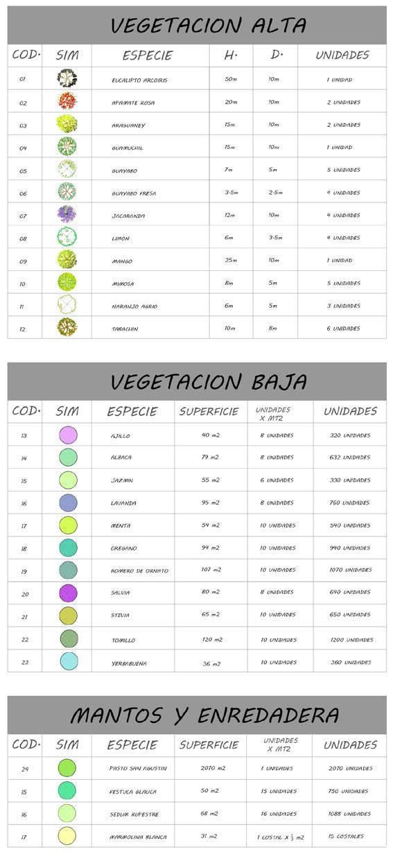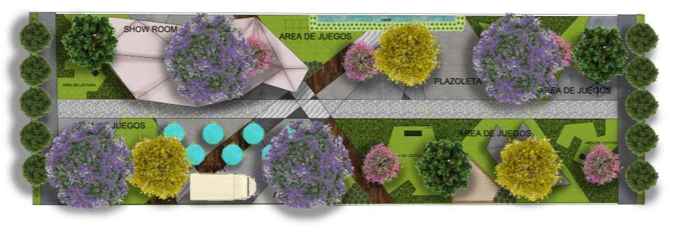 For the vegetation proposal, colorful trees such as Jacaranda, Primavera, Bauhinia, among others, were selected, as well as shrubs such as Oleander for its density and ease of topiary, herbaceous plants such as Agapanthus and Ajillo, and groundcovers such as San Agustin grass for its high resistance to foot traffic and other environmental factors.