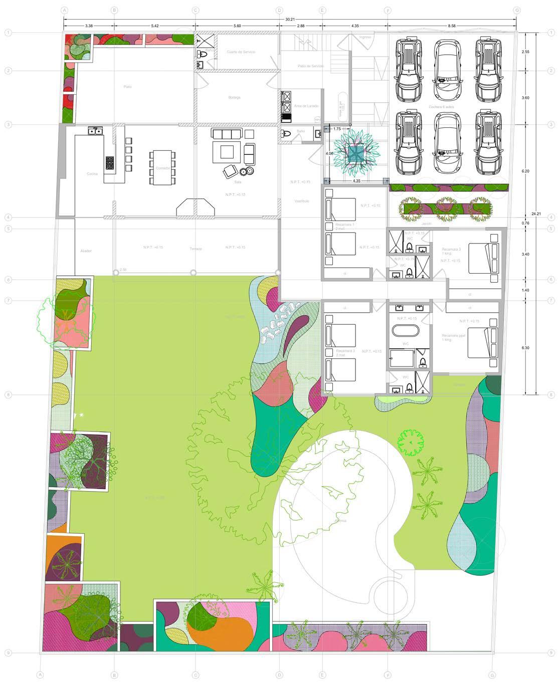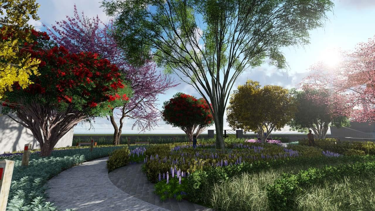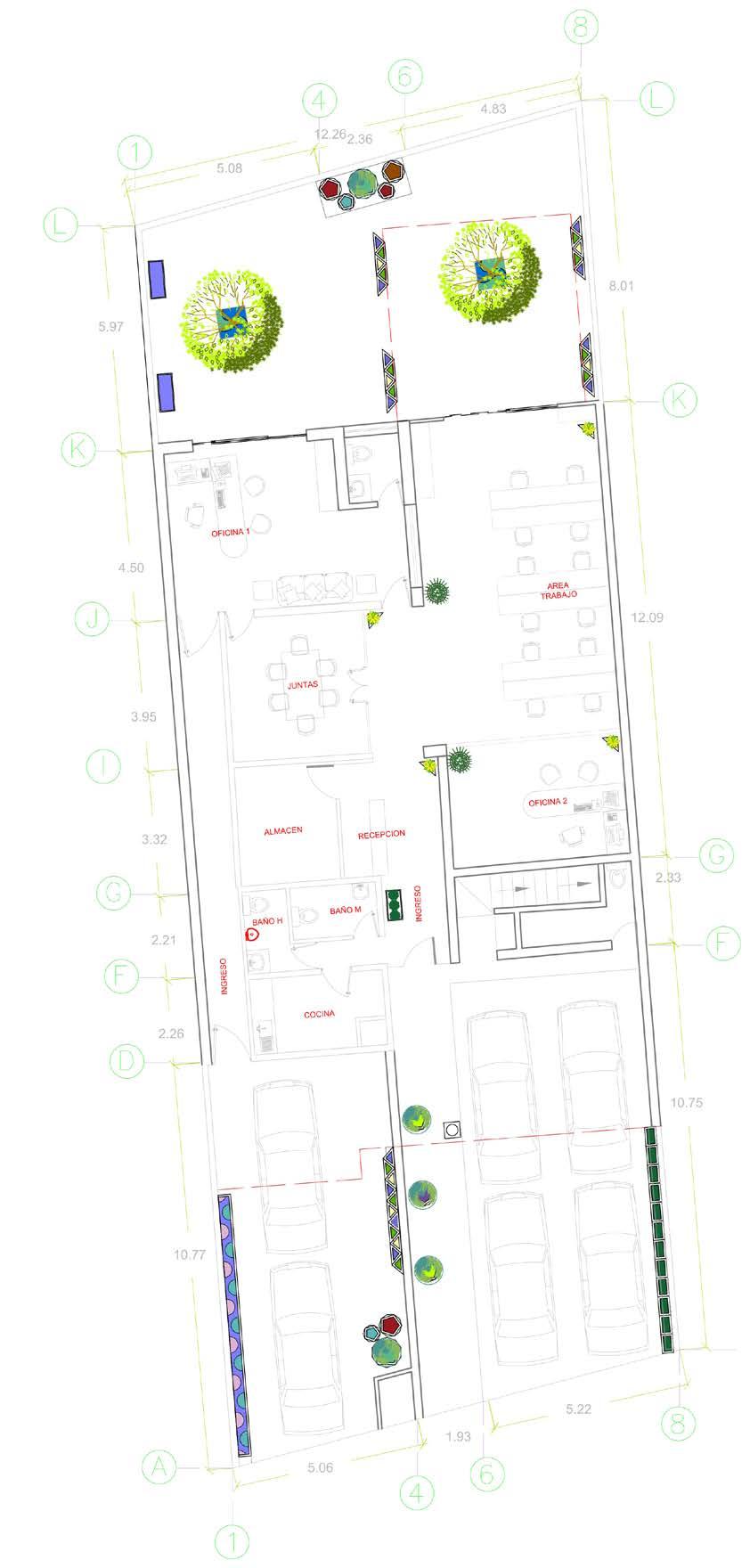 For the vegetation proposal, colorful trees such as Jacaranda, Primavera, Bauhinia, among others, were selected, as well as shrubs such as Oleander for its density and ease of topiary, herbaceous plants such as Agapanthus and Ajillo, and groundcovers such as San Agustin grass for its high resistance to foot traffic and other environmental factors.