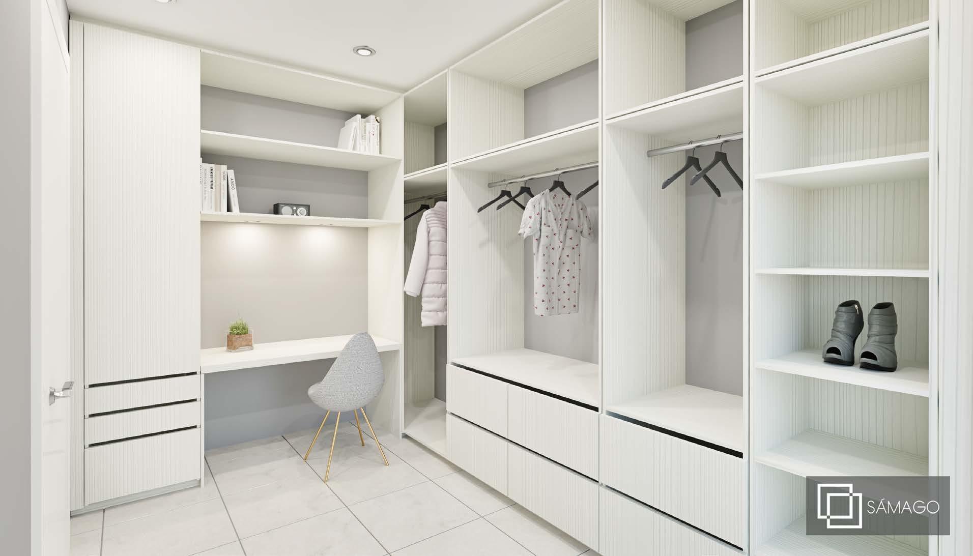Two personalized zones were created: one for the wife’s closet and another for the husband’s.