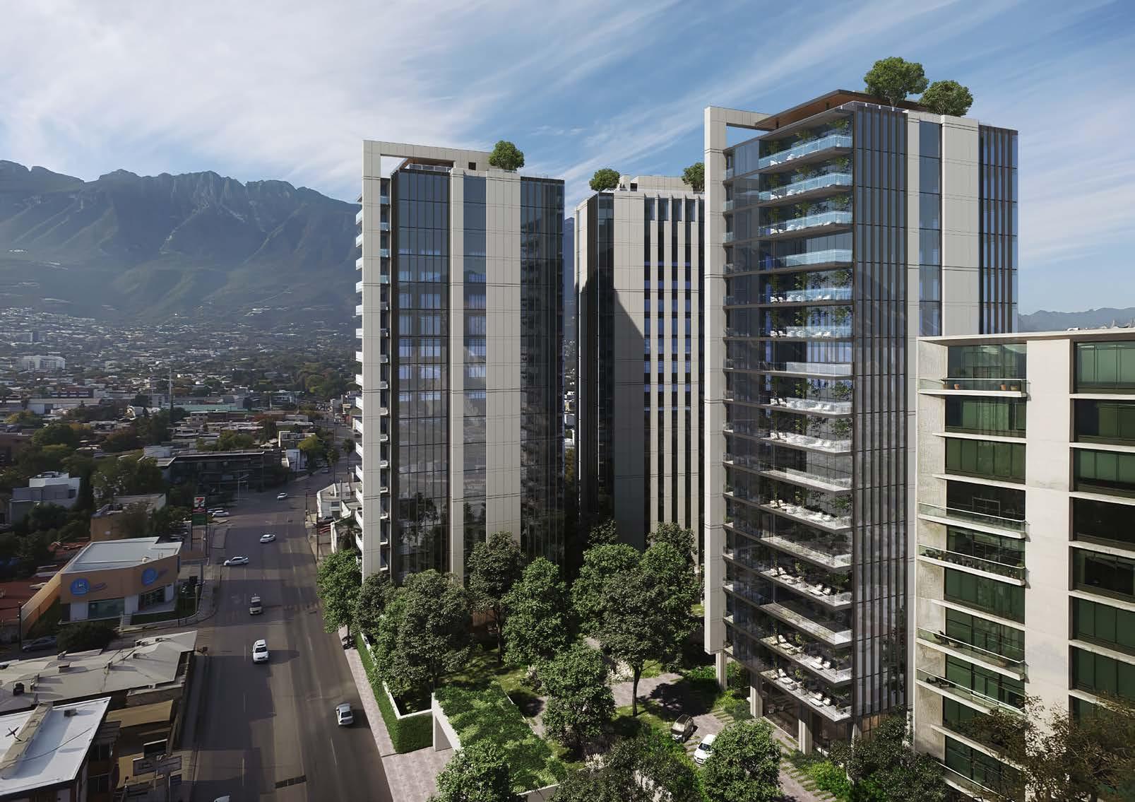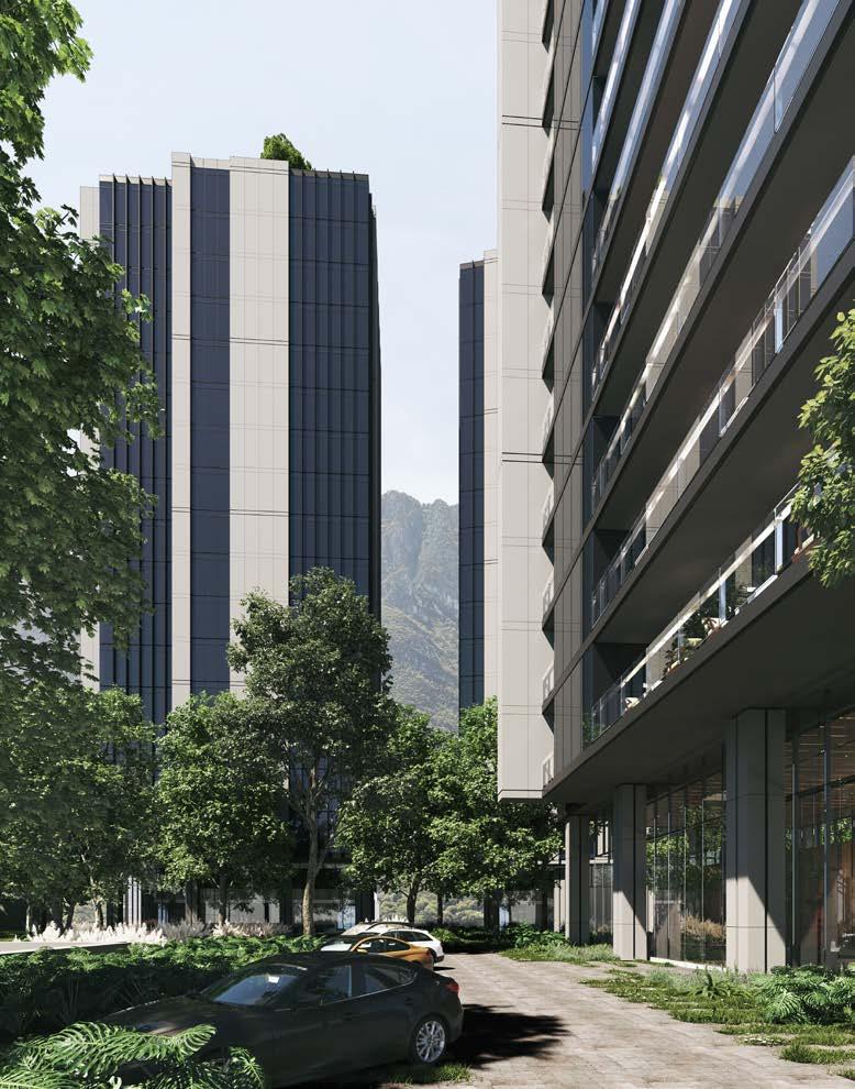 Residential complex consisting of three apartment towers distributed on the site, surrounded by amenities.
