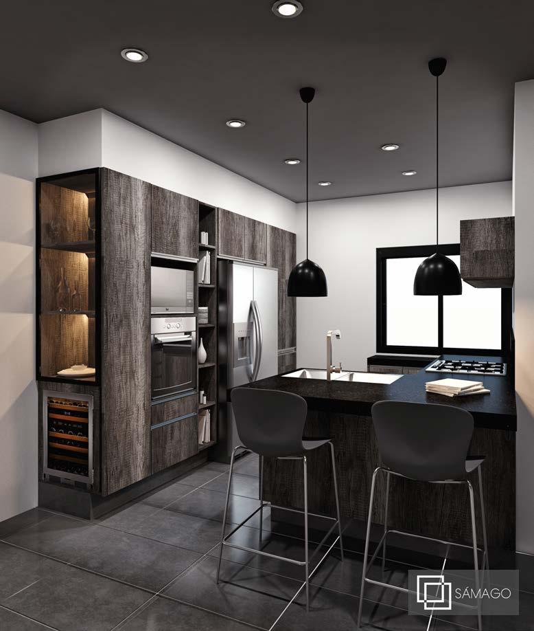 1. National melamine “Nogal Terracota” and black granite countertop.
