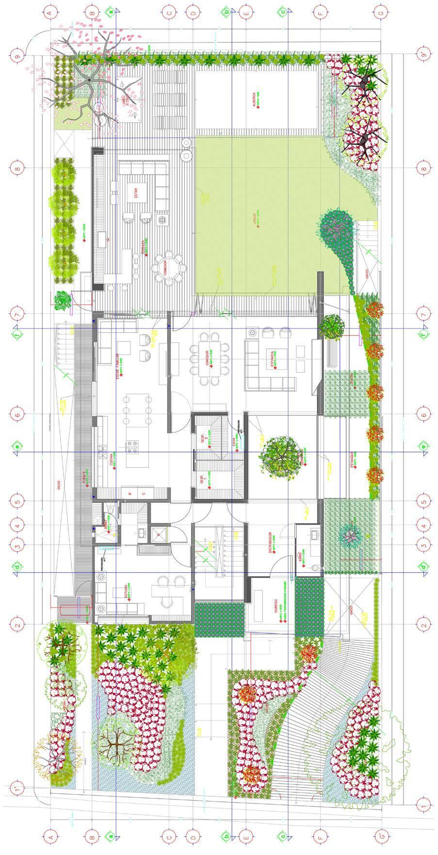 Maximized green spaces by creating tropical plant corridors and focal views from the residence’s interior.