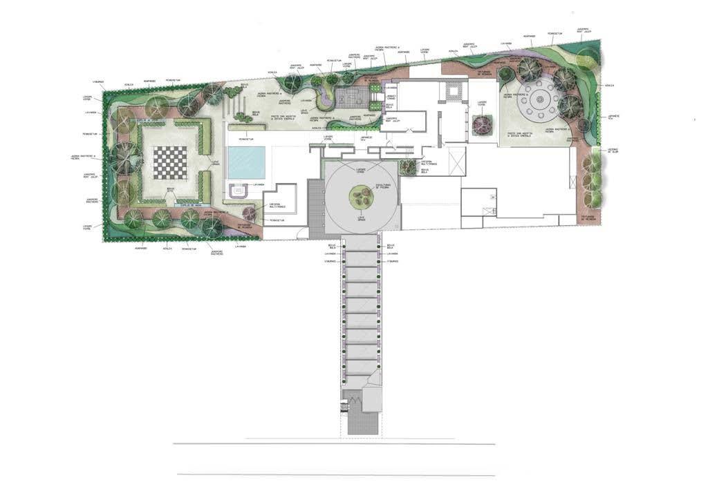 Due to the narrowness of the green areas, a small pathway was proposed from the garage service area to the back garden.