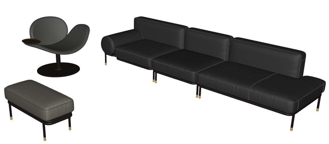 SELVA sofa and armchair modulation in leather, with DOVE armchair for client C.G.