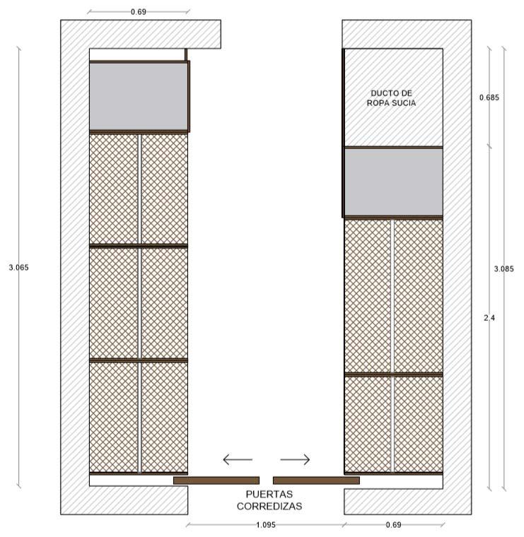 The son’s room built-in wardrobe was made of national melamine with “Nogal Terracota” texture.