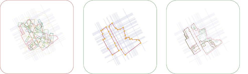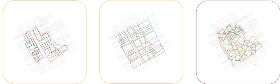 Intersecting , bending, facades. This lead to the idea of an open structure, where there is no clear boundry between inside and outside, public and private