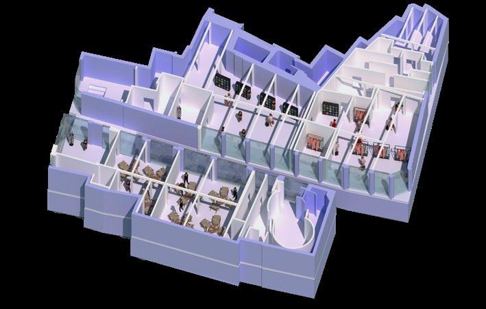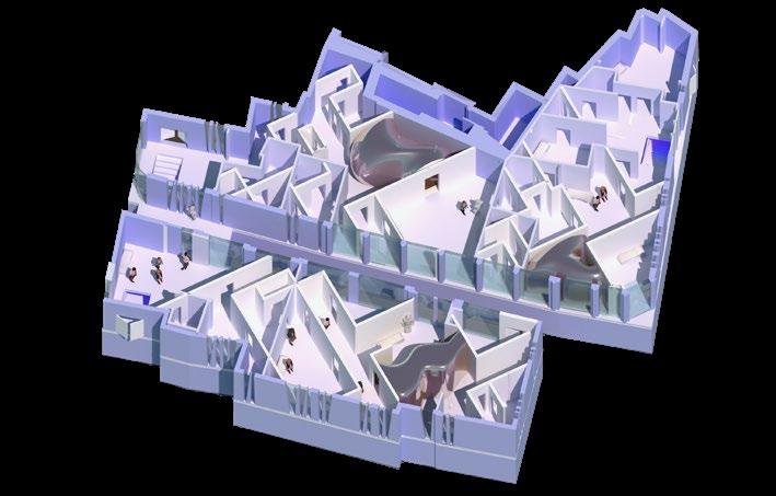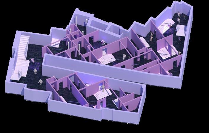 3 In 2021, the construction of the School of In-between has started. It’s four leaders, alongside the natural philosophers and the IIC had only one thing in mind when develop- ing the complex: to catch the “in-between”. Therefore, the building itself had to be represented by a metaphorical contrast, such as light and dark or freedom and safety. The below ground does not exist in real life, it is just an inverted reflection of what there is above.