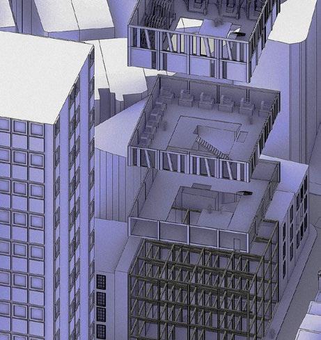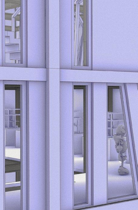 4 The first and second floors are the study rooms where access is granted to all, while the next floors are reserved for the gods who stood at the beginning of time. They are completely exposed to the world , yet no one can see them. Not Bernard, not John, not any- one. The only utterly visible things is how the wind always blows faster throught the huge sponges, how the solitary tree is always “running” and how new technologies emearge on the site everyday. And still, nobody is questioning anything. All individuals see the building as under construction.