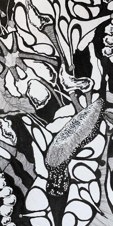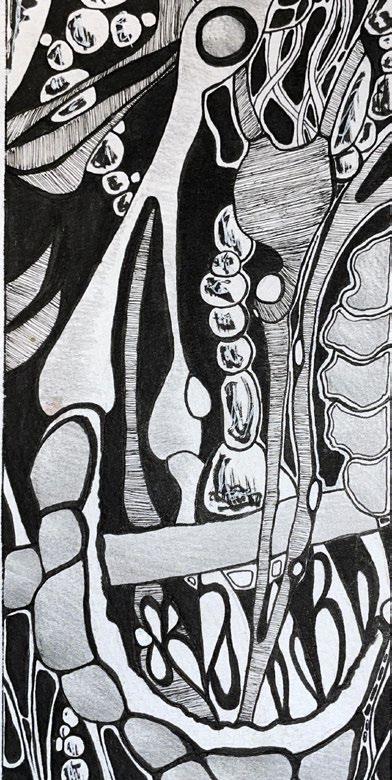 In the serene ambiance of an art gallery, a single piece hung, capturing the essence of a profound relationship between Man and Nature. Titled simply “The Philanthropist,” the ink drawing portrayed a human figure adorned in a tapestry of flowers and vines, intertwined with the stark imagery of bones.