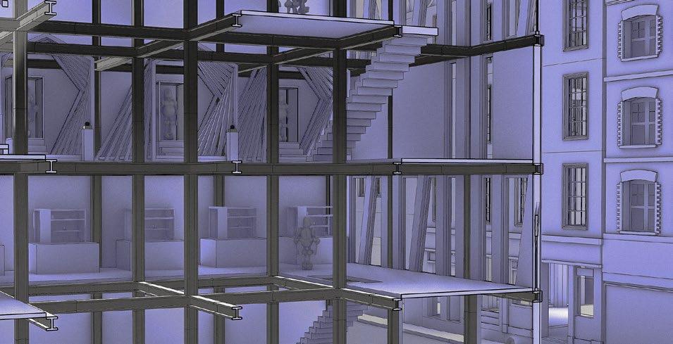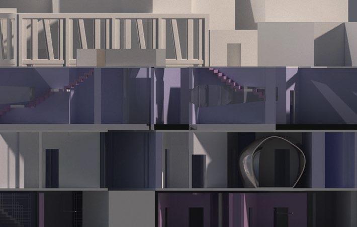Instalations in a building, are the same as organs in humans. The building is cut and connected back to the other part. By cutting and rotating the floor and stairs, new moments are created.