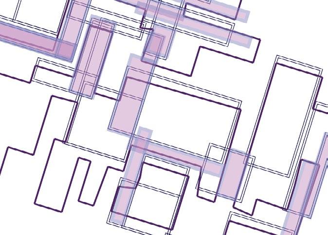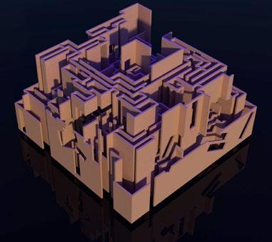 Extruding the shapes.The interior rectangles merge, creating the appereance of a maze. 9 After