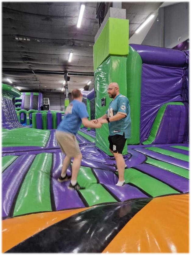 The network decided on points of achievement –this first step was to successfully support Harry into the trampoline park, and each time he was more and more comfortable.