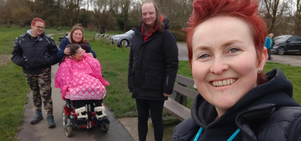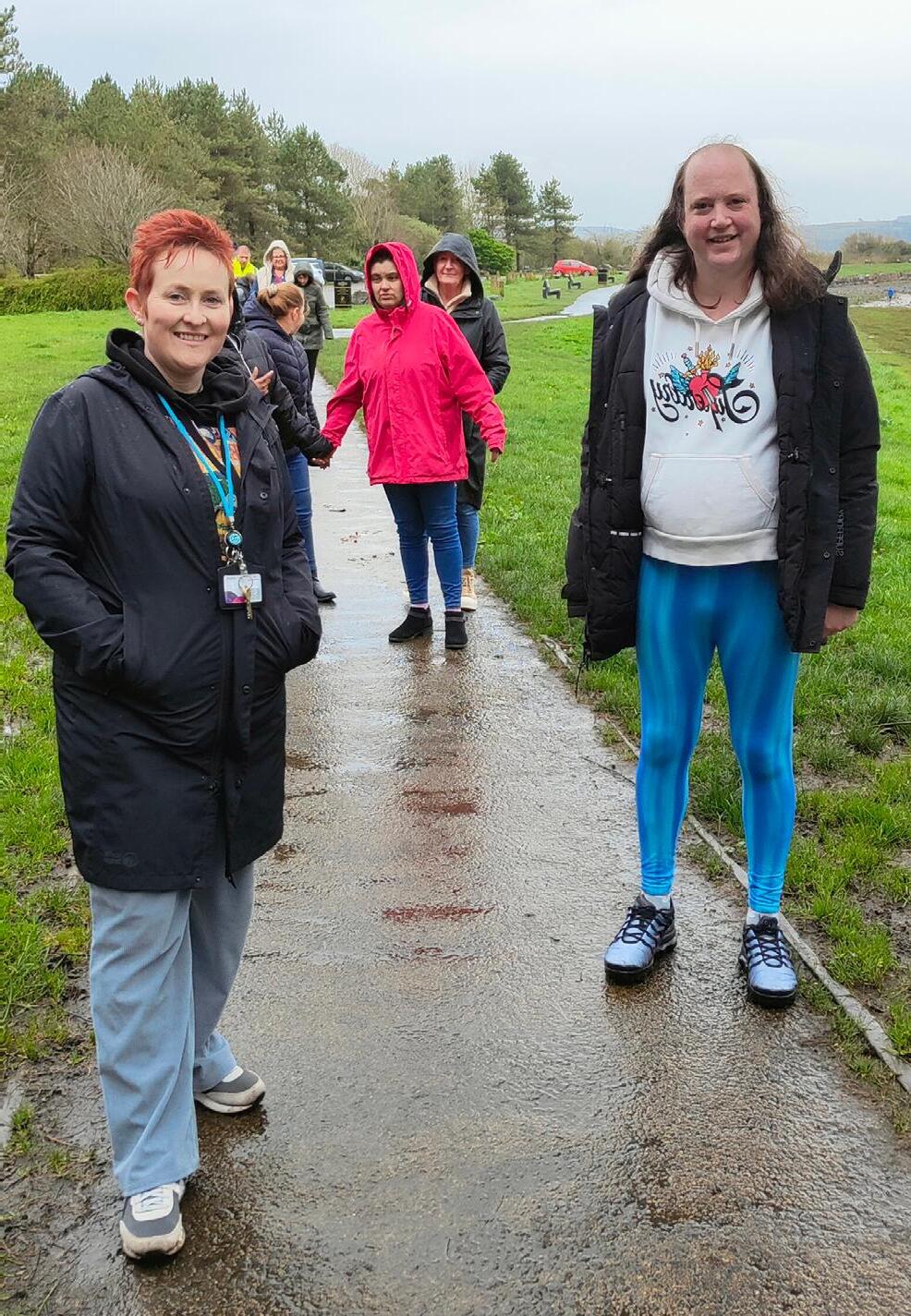 Staff member Kelly Bent (right) organises the accessible Wellbeing Walks, which take place in Gorseinon every Monday at 10am.