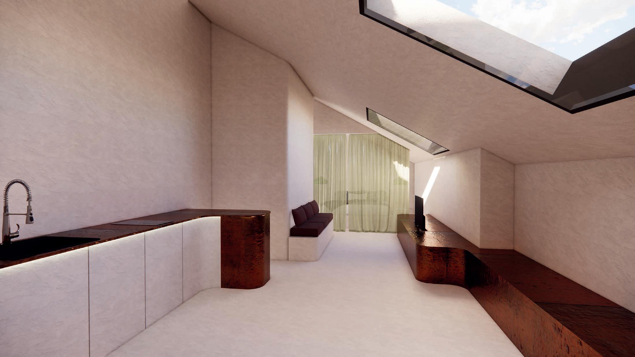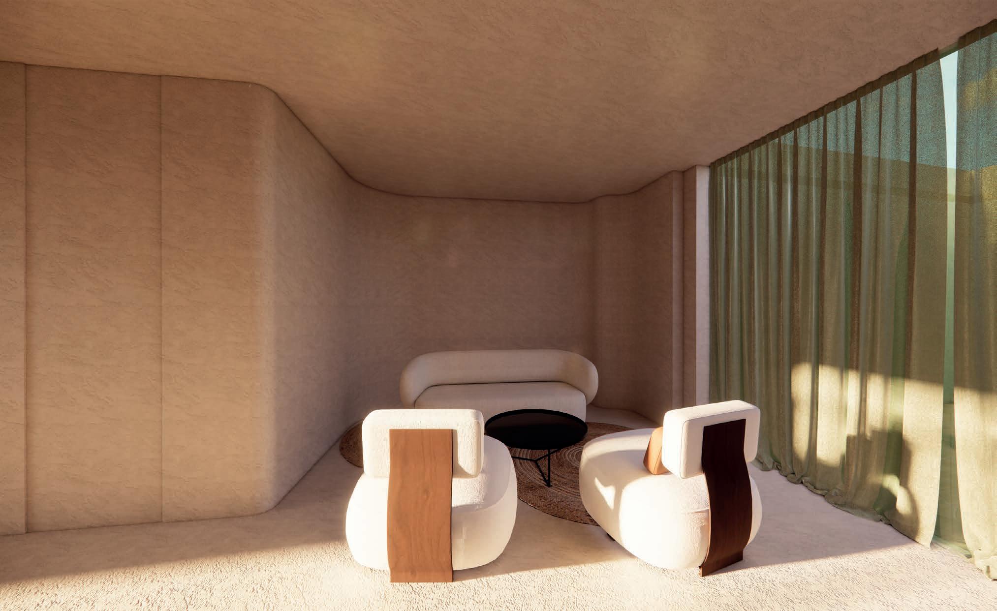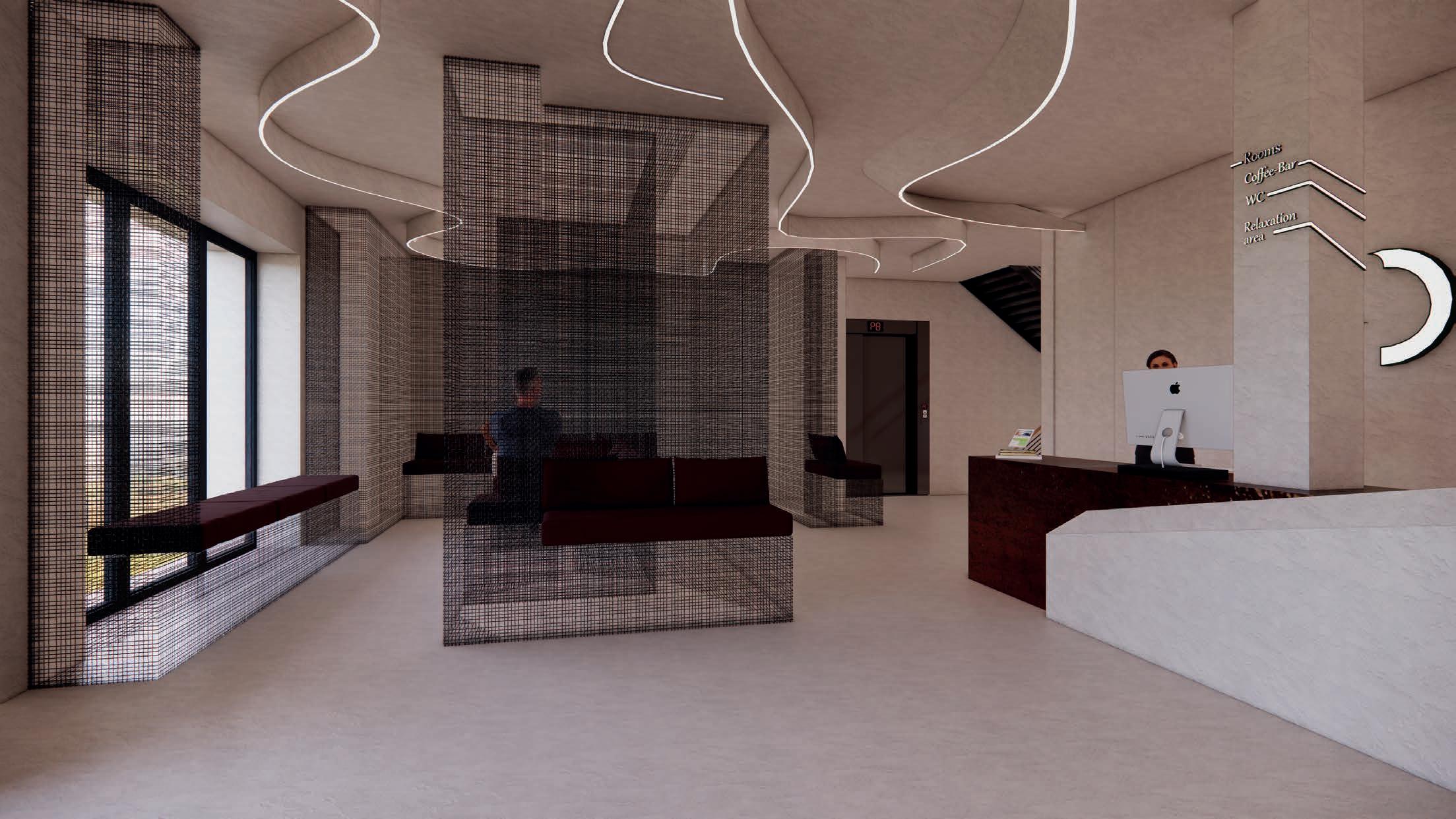 El hilo conductor del hotel viene dado del propio nombre, pero además se van a encontrar una infinidad de contraposiciones, el vacío y el lleno, lo artificial y lo natural, el color y el no color, así como el más destacado, las líneas curvas y las líneas rectas y un cambio de ambiente entre el día y la noche.