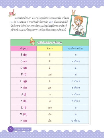 เคยสงสัยกันไหมว่า ภาษาอังกฤษมีวธิ กี ารอ่านอย่างไร ท�ำไมตัว C, ตัว A และตัว T รวมกันแล้วจึงอ่านว่า แคท ที่แปลว่าแมวได้ นัน่ ก็เพราะว่าตัวอักษรภาษาอังกฤษแต่ละตัวจะมีการออกเสียงที่ คล้ายคลึงกับภาษาไทย ดังตารางเปรียบเทียบการออกเสียงดังนี้